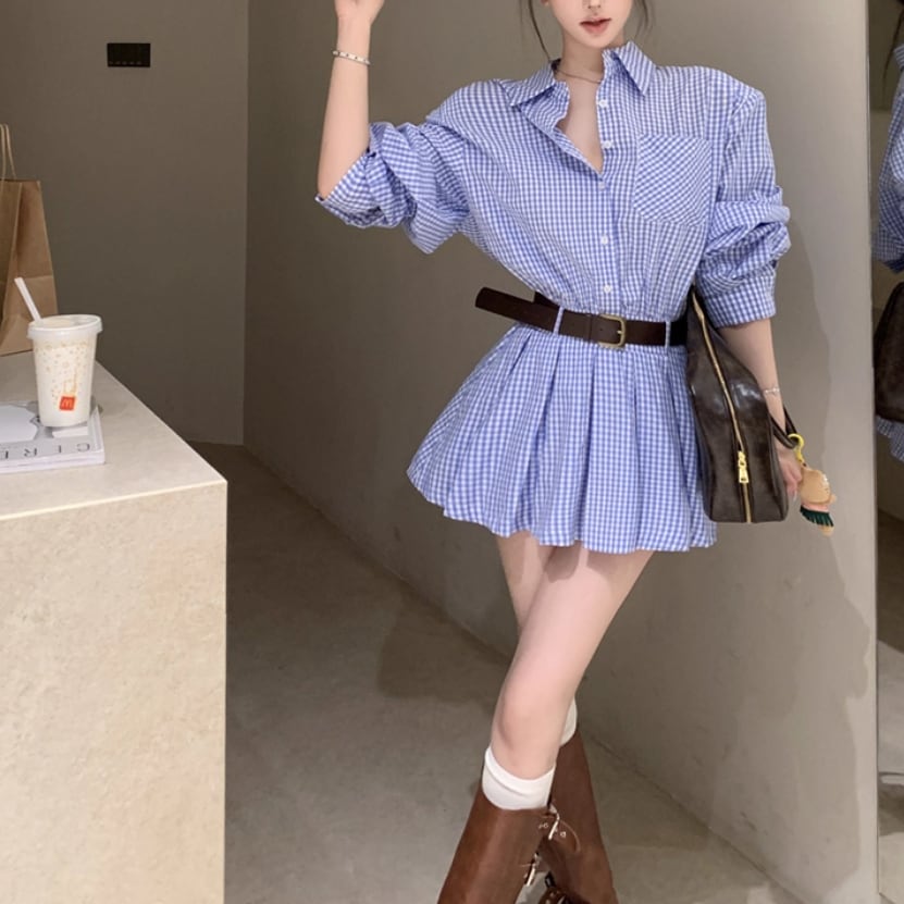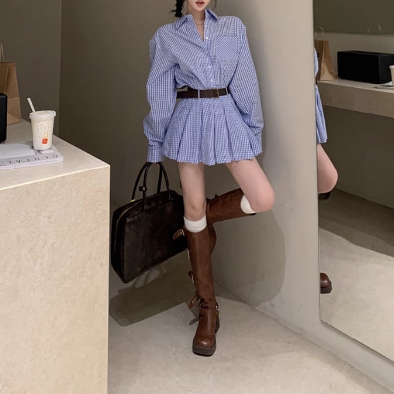 2色/切替ストライプリボンプリーツワンピ ・63127