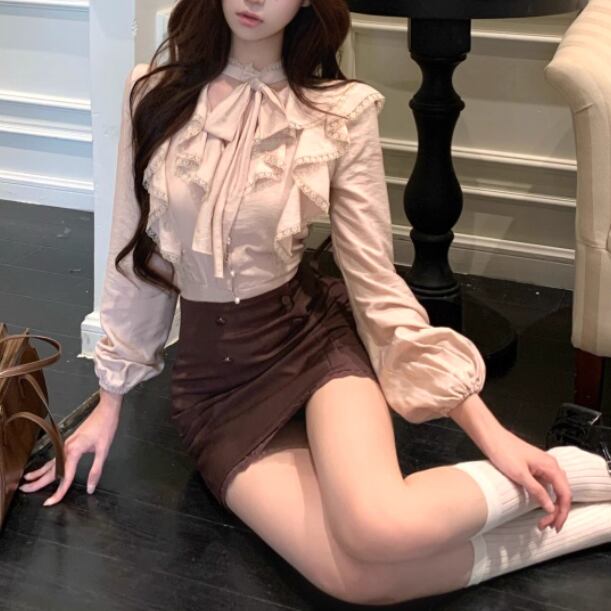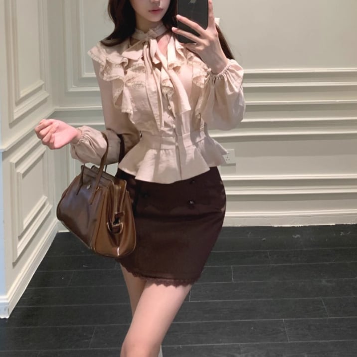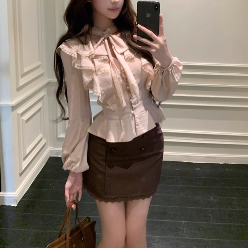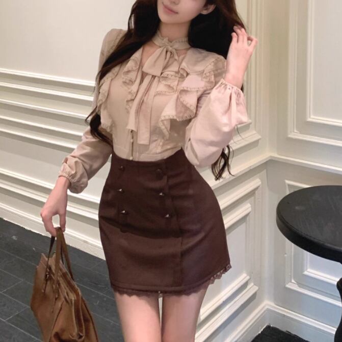 ▽Instagram「新作情報配信中」 フォローお願いいたします。 https://www.instagram.com/sucrier_closet/ ▼サイズ [ Sサイズ ] ブラウス:着丈51cm バスト84.5cm 袖丈57cm ウエスト64cm スカート:着丈40cm ウエスト62cm ヒップ89cm [ Mサイズ ] ブラウス:着丈52cm バスト88.5cm 袖丈58cm ウエスト68cm スカート:着丈41cm ウエスト66cm ヒップ94cm [ Lサイズ ] ブラウス:着丈53cm バスト92.5cm 袖丈59cm ウエスト72cm スカート:着丈42cm ウエスト70cm ヒップ98cm ※1-3cm程度の誤差がある場合がございます。予めご了承ください。 ▼シーズン 春,秋 ▼同じカテゴリの商品はこちら https://www.sucrier.jp/categories/1737171 ▽お支払い方法 ・クレジットカード決済 ・キャリア決済 (docomo/au/Softbank/Y!mobile) ・後払い決済 (商品お届け後コンビニ払いなど) ▽注意点 ※こちらの商品は決済から10日-3週間前後でのお届けとなります。 ※配送日時指定等に関しては、ご指定できないことご了承くださいませ。 ※できる限り早くお届けできるように手配させて頂きます。 ※検品はしておりますが、もし届いた商品に不備がありましたら、誠実に対応させていただきます。 商品ID:SC071854