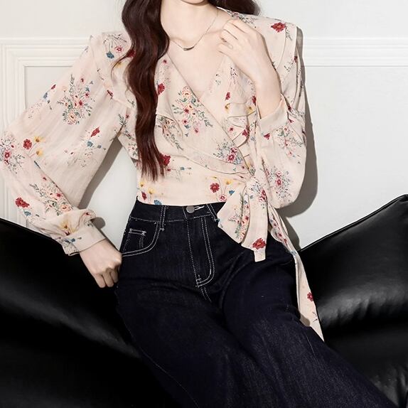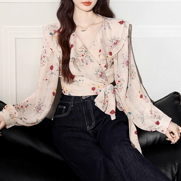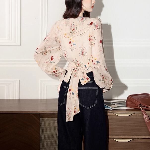 ボリュームスリーブレースラウンドカラーブラウス ・67546