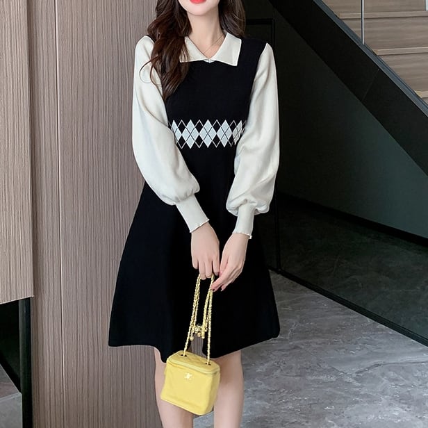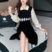 【2点セット】ストライプ柄パフスリーブワンピ+ベルト ・68546