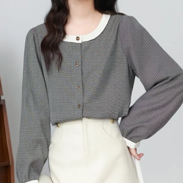 ボリュームスリーブレースラウンドカラーブラウス ・67546