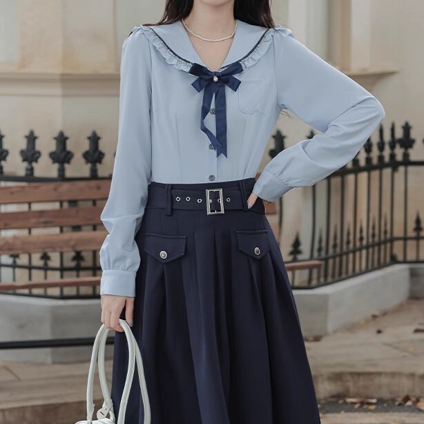 ▽Instagram「新作情報配信中」 フォローお願いいたします。 https://www.instagram.com/sucrier_closet/ ▼カラー ネイビー ▼サイズ [ Sサイズ ] ブラウス:着丈56cm 袖丈61cm スカート:着丈84cm ウエスト64cm [ Mサイズ ] ブラウス:着丈57cm 袖丈62cm スカート:着丈85cm ウエスト68cm [ Lサイズ ] ブラウス:着丈58cm 袖丈63cm スカート:着丈86cm ウエスト72cm [ XLサイズ ] ブラウス:着丈59cm 袖丈64cm スカート:着丈87cm ウエスト76cm ※1-3cm程度の誤差がある場合がございます。予めご了承ください。 ▼シーズン 春,秋 ▼同じカテゴリの商品はこちら https://www.sucrier.jp/categories/1737171 ▽お支払い方法 ・クレジットカード決済 ・キャリア決済 (docomo/au/Softbank/Y!mobile) ・後払い決済 (商品お届け後コンビニ払いなど) ▽注意点 ※こちらの商品は決済から10日-3週間前後でのお届けとなります。 ※配送日時指定等に関しては、ご指定できないことご了承くださいませ。 ※できる限り早くお届けできるように手配させて頂きます。 ※検品はしておりますが、もし届いた商品に不備がありましたら、誠実に対応させていただきます。 商品ID:SC072242