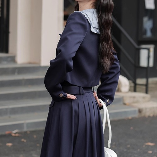 【3点セット】ショート丈ジャケット+リボンチューブトップ+フリルスカパン ・66750