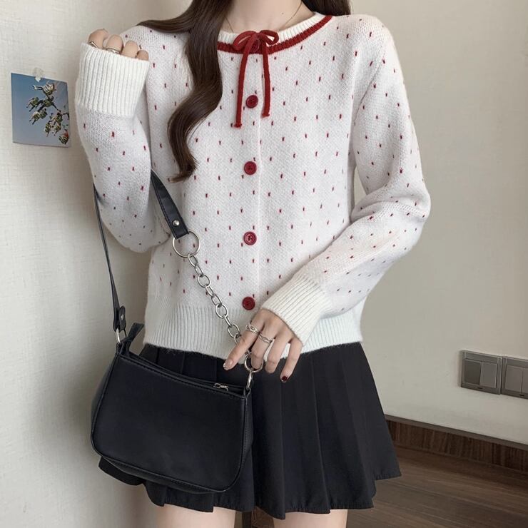 4色/Vネックフリルリボンケーブルニット ・66138