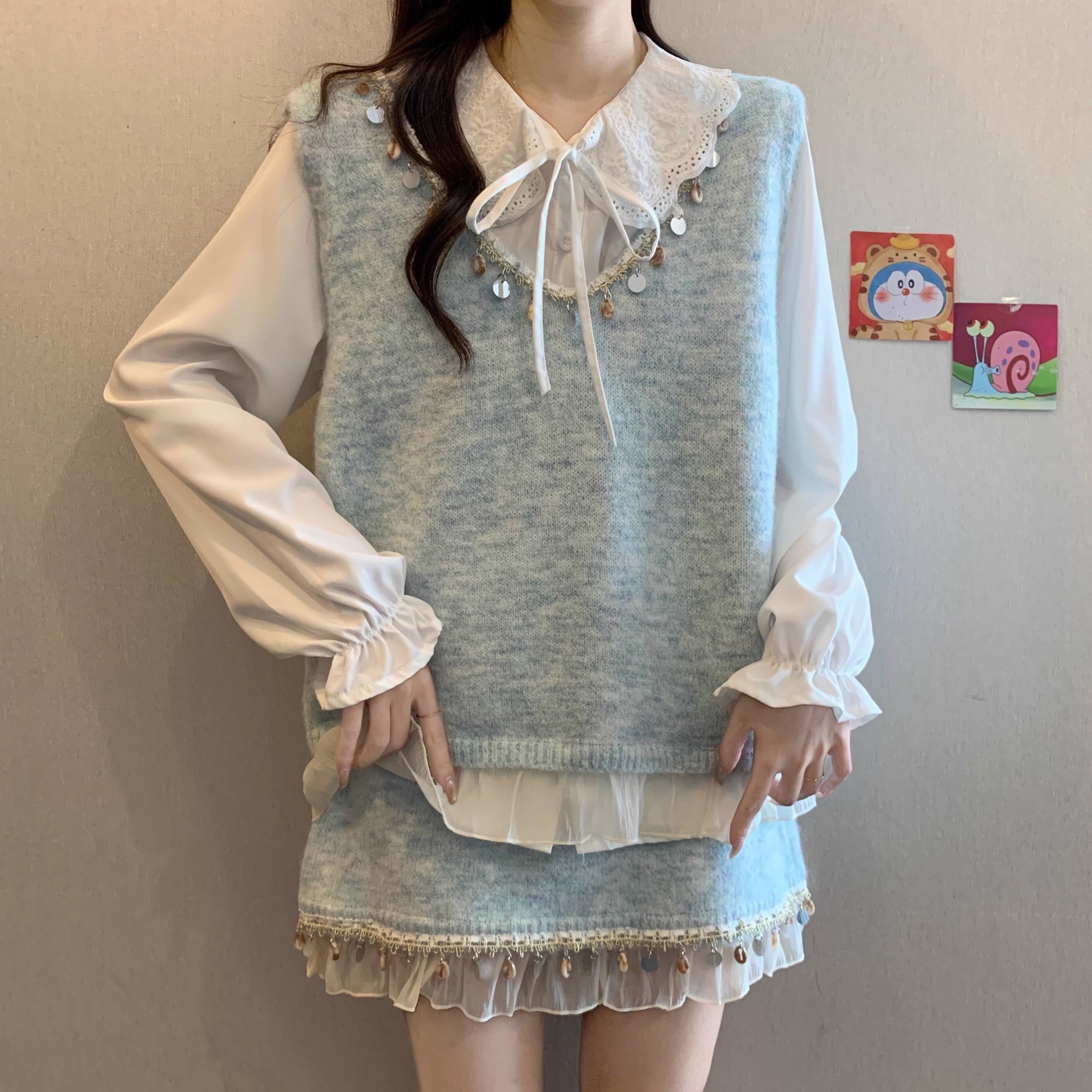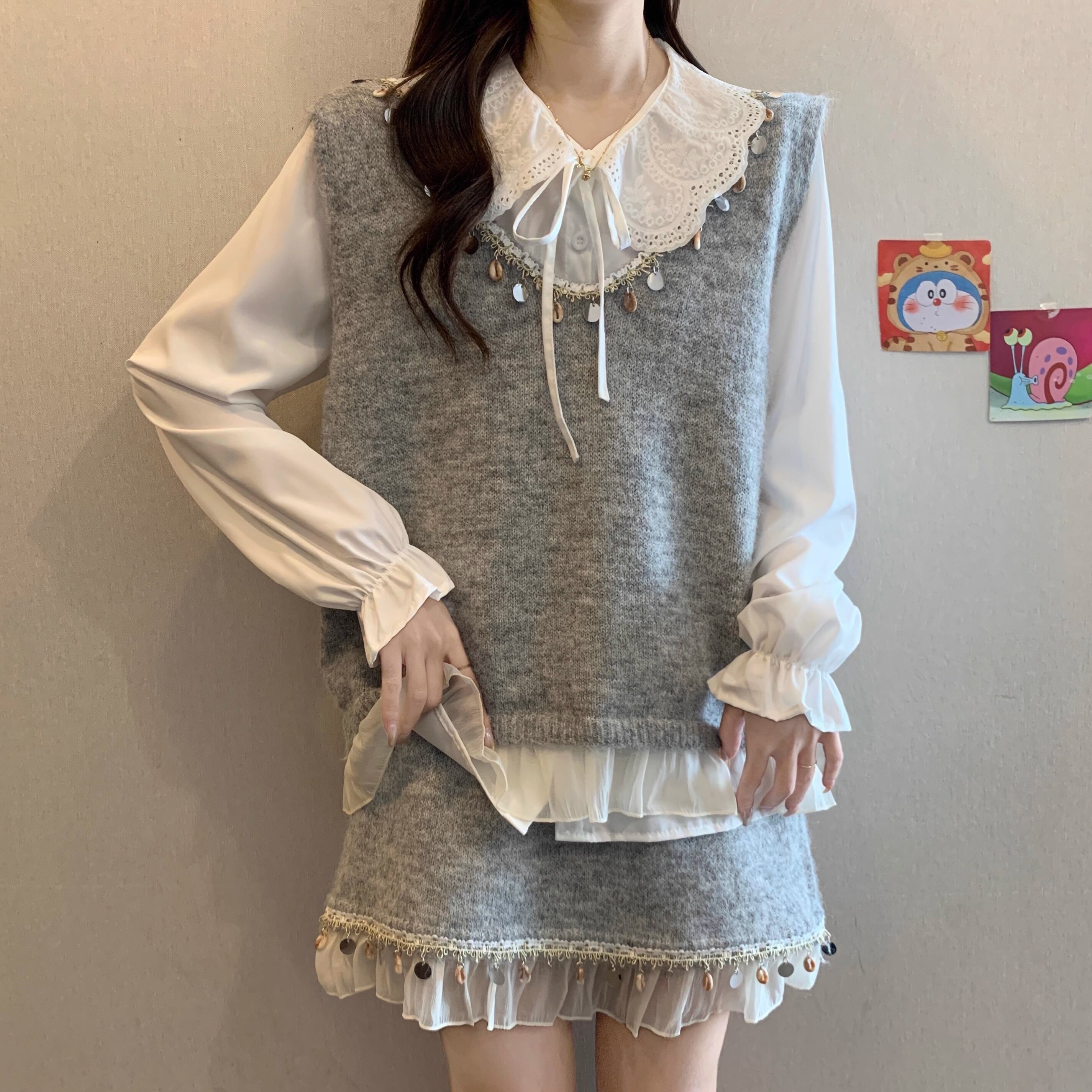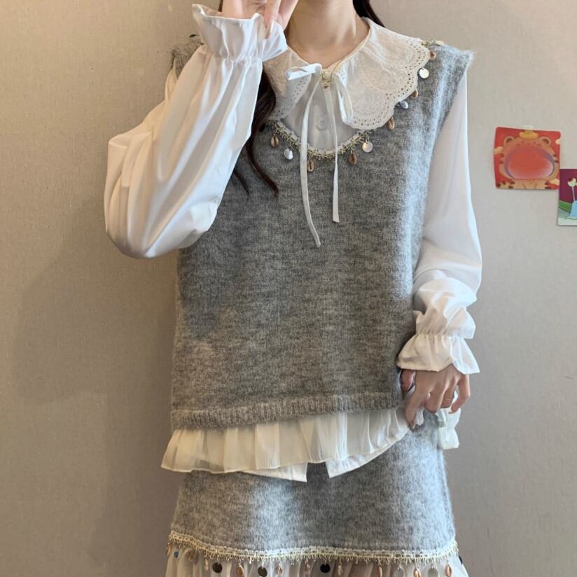 ▽Instagram「新作情報配信中」 フォローお願いいたします。 https://www.instagram.com/sucrier_closet/ ▼カラー グレー(画像2枚目) ブルー(画像3枚目) ▼サイズ [ Mサイズ ] ブラウス:着丈58cm バスト110cm 肩幅42cm 袖丈58cm ベスト:着丈52cm バスト120cm スカート:着丈36cm ウエスト64cm [ Lサイズ ] ブラウス:着丈59cm バスト114cm 肩幅43cm 袖丈59cm ベスト:着丈53cm バスト124cm スカート:着丈37cm ウエスト68cm [ XLサイズ ] ブラウス:着丈60cm バスト118cm 肩幅44cm 袖丈60cm ベスト:着丈54cm バスト128cm スカート:着丈38cm ウエスト72cm [ 2XLサイズ ] ブラウス:着丈61cm バスト122cm 肩幅45cm 袖丈61cm ベスト:着丈55cm バスト132cm スカート:着丈39cm ウエスト76cm [ 3XLサイズ ] ブラウス:着丈62cm バスト126cm 肩幅46cm 袖丈62cm ベスト:着丈56cm バスト136cm スカート:着丈40cm ウエスト80cm [ 4XLサイズ ] ブラウス:着丈63cm バスト130cm 肩幅47cm 袖丈63cm ベスト:着丈57cm バスト140cm スカート:着丈41cm ウエスト84cm ※1-3cm程度の誤差がある場合がございます。予めご了承ください。 ▼シーズン 春,秋 ▼同じカテゴリの商品はこちら https://www.sucrier.jp/categories/1737171 ▽お支払い方法 ・クレジットカード決済 ・キャリア決済 (docomo/au/Softbank/Y!mobile) ・後払い決済 (商品お届け後コンビニ払いなど) ▽注意点 ※こちらの商品は決済から10日-3週間前後でのお届けとなります。 ※配送日時指定等に関しては、ご指定できないことご了承くださいませ。 ※できる限り早くお届けできるように手配させて頂きます。 ※検品はしておりますが、もし届いた商品に不備がありましたら、誠実に対応させていただきます。 商品ID:SC072185