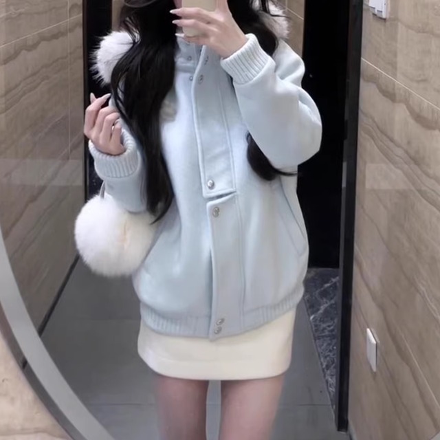 ウールライクファーフーデッドブルゾン ・74176