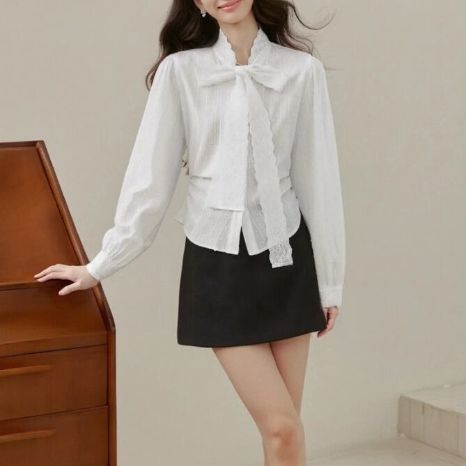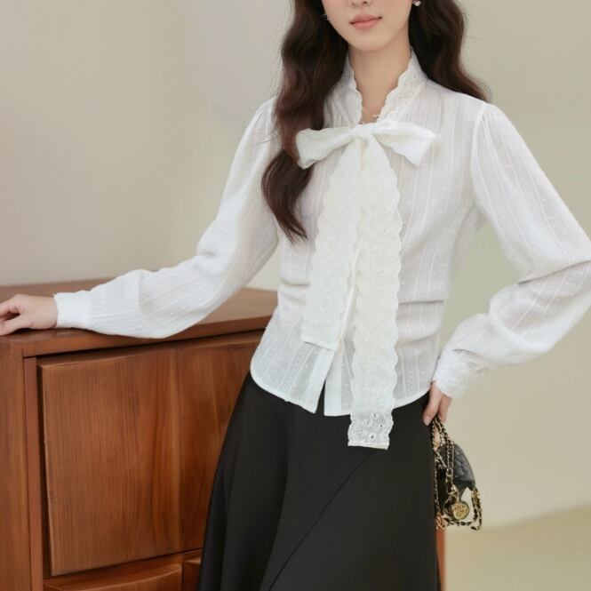 ボリュームスリーブレースラウンドカラーブラウス ・67546