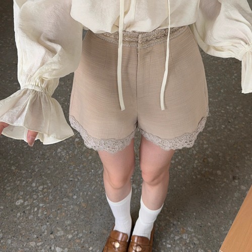 【2点セット】ボウタイカラートップス+サイドレースリボンパンツ ・75530