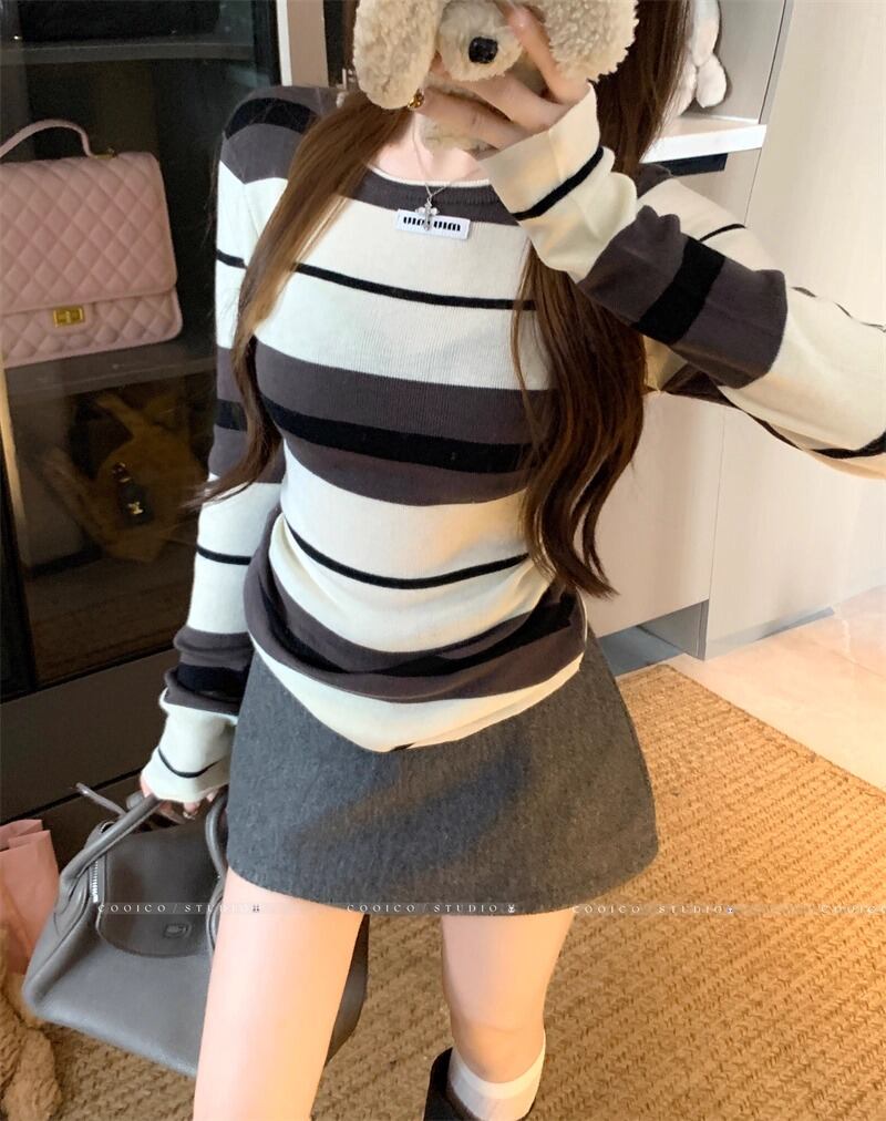 セーラーカラーランダムリブニットトップス ・71504