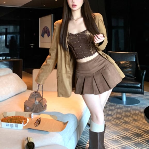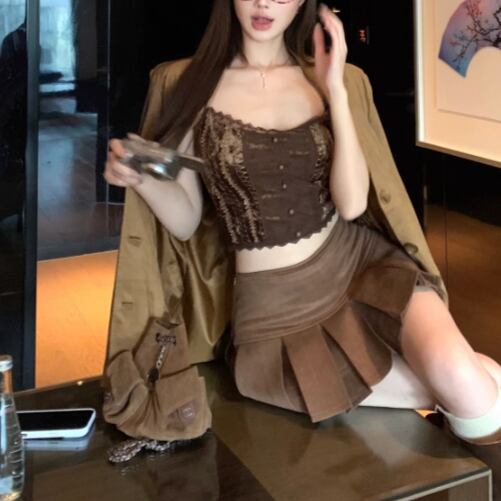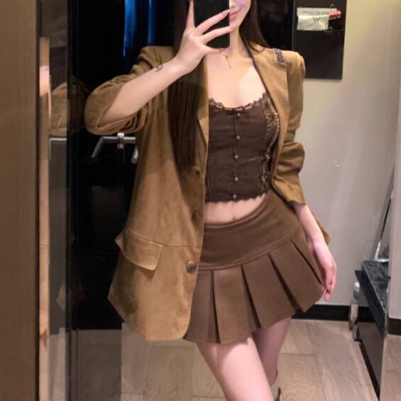 ▽Instagram「新作情報配信中」 フォローお願いいたします。 https://www.instagram.com/sucrier_closet/ ▼カラー ブラウン ▼サイズ [ Sサイズ ] トップス:着丈76cm バスト108cm 肩幅44cm 袖丈63cm キャミ:着丈41cm バスト70cm スカート:着丈27cm ウエスト68cm ヒップ92cm [ Mサイズ ] トップス:着丈77.5cm バスト112cm 肩幅45cm 袖丈64cm キャミ:着丈42cm バスト74cm スカート:着丈28cm ウエスト72cm ヒップ96cm [ Lサイズ ] トップス:着丈79cm バスト116cm 肩幅46cm 袖丈65cm キャミ:着丈43cm バスト78cm スカート:着丈29cm ウエスト76cm ヒップ100cm ※1-3cm程度の誤差がある場合がございます。予めご了承ください。 ▼シーズン 春,秋 ▼同じカテゴリの商品はこちら https://www.sucrier.jp/categories/1737171 ▽お支払い方法 ・クレジットカード決済 ・キャリア決済 (docomo/au/Softbank/Y!mobile) ・後払い決済 (商品お届け後コンビニ払いなど) ▽注意点 ※こちらの商品は決済から10日-3週間前後でのお届けとなります。 ※配送日時指定等に関しては、ご指定できないことご了承くださいませ。 ※できる限り早くお届けできるように手配させて頂きます。 ※検品はしておりますが、もし届いた商品に不備がありましたら、誠実に対応させていただきます。 商品ID:SC072391