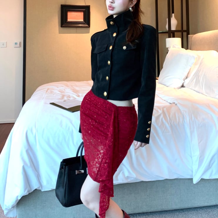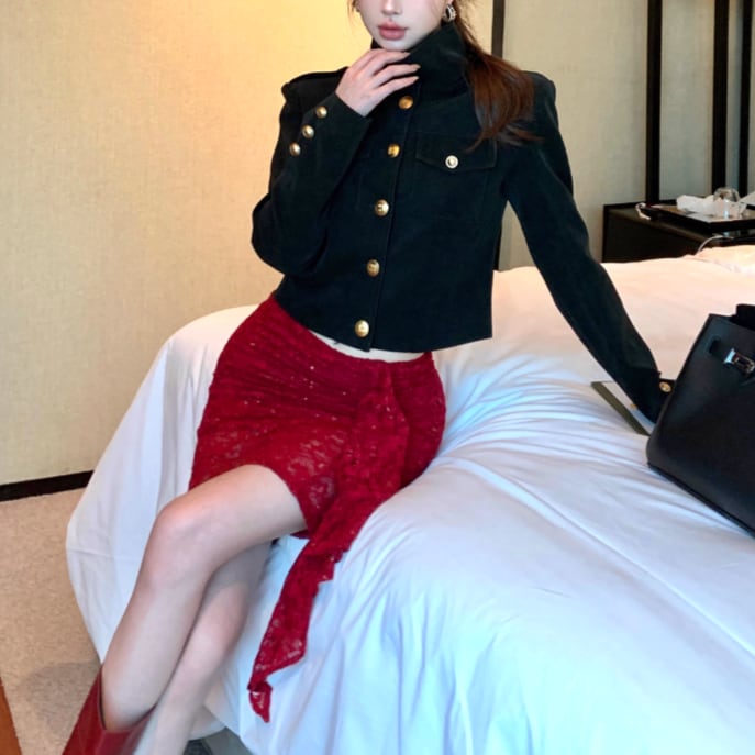 【3点セット】ショート丈ジャケット+リボンチューブトップ+フリルスカパン ・66750