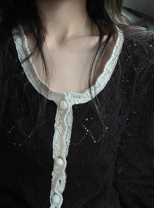 袖絞りケミカルレースカーデ ・22811