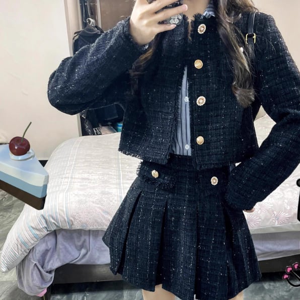 ▽Instagram「新作情報配信中」 フォローお願いいたします。 https://www.instagram.com/sucrier_closet/ ▼カラー ブラック ▼サイズ [ Sサイズ ] ジャケット:着丈42cm バスト98cm 肩幅42cm 袖丈58cm スカート:着丈40cm ウエスト64cm [ Mサイズ ] ジャケット:着丈43cm バスト102cm 肩幅43cm 袖丈59cm スカート:着丈41cm ウエスト68cm [ Lサイズ ] ジャケット:着丈44cm バスト106cm 肩幅44cm 袖丈60cm スカート:着丈42cm ウエスト72cm [ XLサイズ ] ジャケット:着丈45cm バスト110cm 肩幅45cm 袖丈61cm スカート:着丈43cm ウエスト76cm ※1-3cm程度の誤差がある場合がございます。予めご了承ください。 ▼シーズン 秋冬 ▼同じカテゴリの商品はこちら https://www.sucrier.jp/categories/1737171 ▽お支払い方法 ・クレジットカード決済 ・キャリア決済 (docomo/au/Softbank/Y!mobile) ・後払い決済 (商品お届け後コンビニ払いなど) ▽注意点 ※こちらの商品は決済から10日-3週間前後でのお届けとなります。 ※配送日時指定等に関しては、ご指定できないことご了承くださいませ。 ※できる限り早くお届けできるように手配させて頂きます。 ※検品はしておりますが、もし届いた商品に不備がありましたら、誠実に対応させていただきます。 商品ID:SC072337