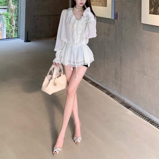 ボリュームスリーブレースラウンドカラーブラウス ・67546