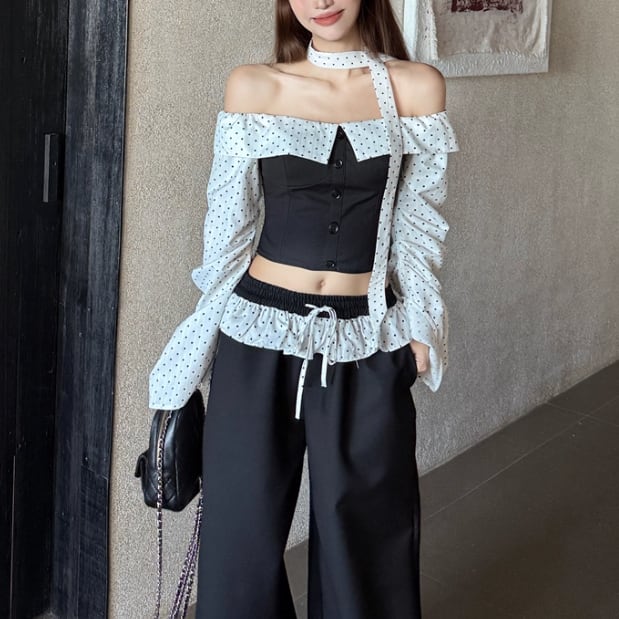 【3点セット】ショート丈ジャケット+リボンチューブトップ+フリルスカパン ・66750