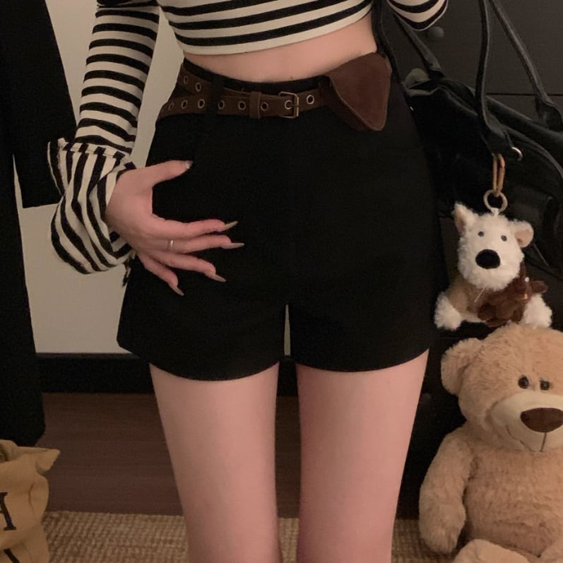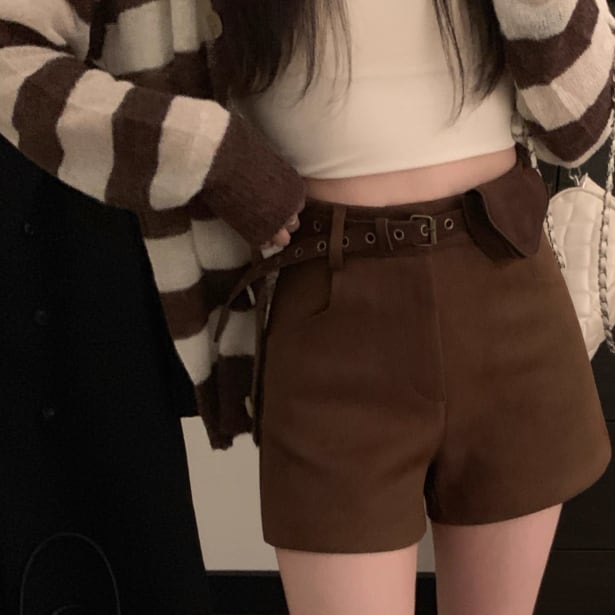 【2点セット】3色/ハイウエストショートパンツ+ベルト ・73228