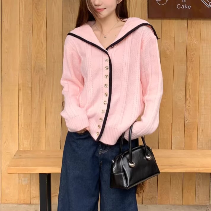 4色/ハートボタンラウンドネックニットカーディガン ・73710