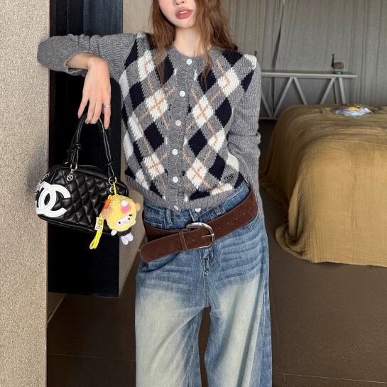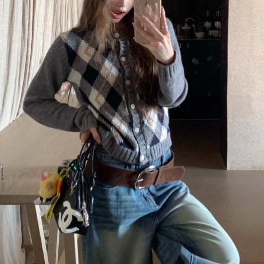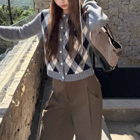 2色/ノルディック柄ポロカラーニットカーデ ・72764