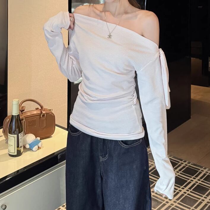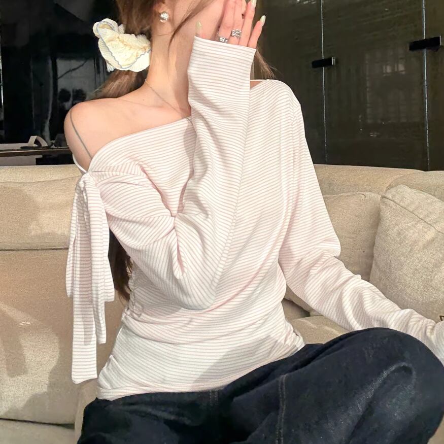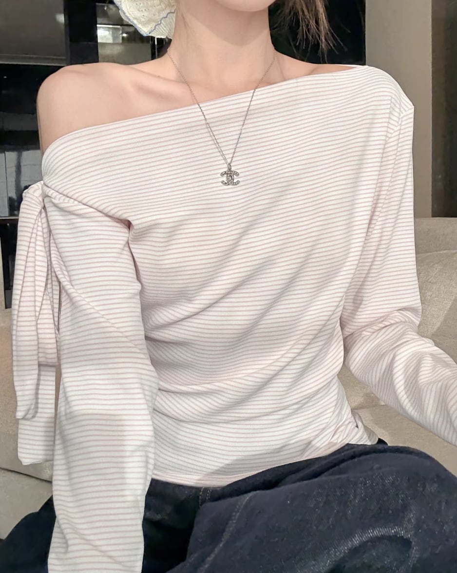 ストライプリボンニットコンビトップス ・72823