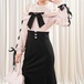 【2点セット】ストライプ柄パフスリーブワンピ+ベルト ・68546