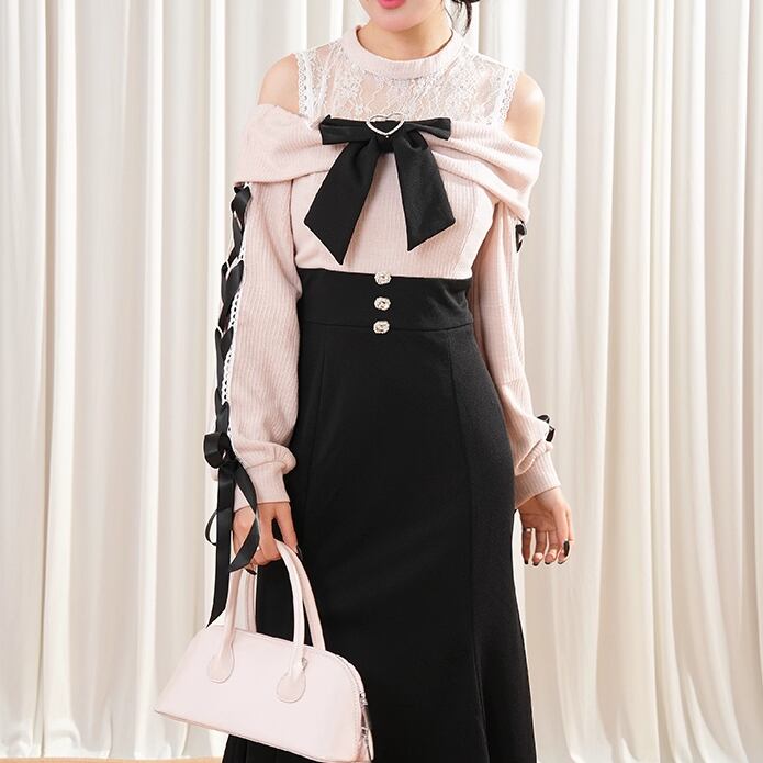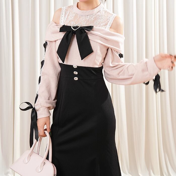 2色/切替ストライプリボンプリーツワンピ ・63127