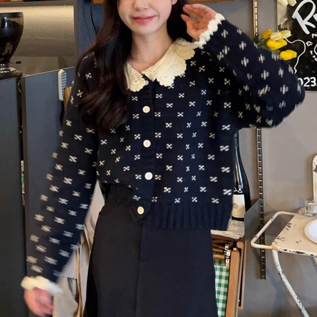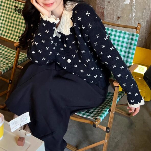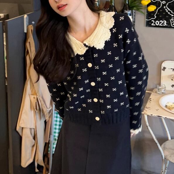 2色/ノルディック柄ポロカラーニットカーデ ・72764