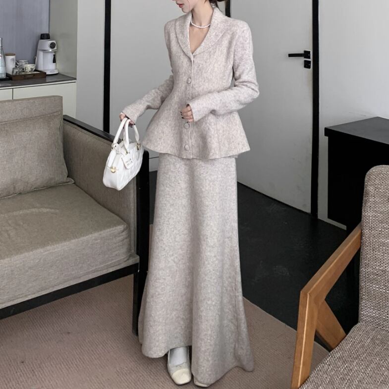 【2点セット】レイヤード風ツイードジャケット+プリーツスカート ・65693