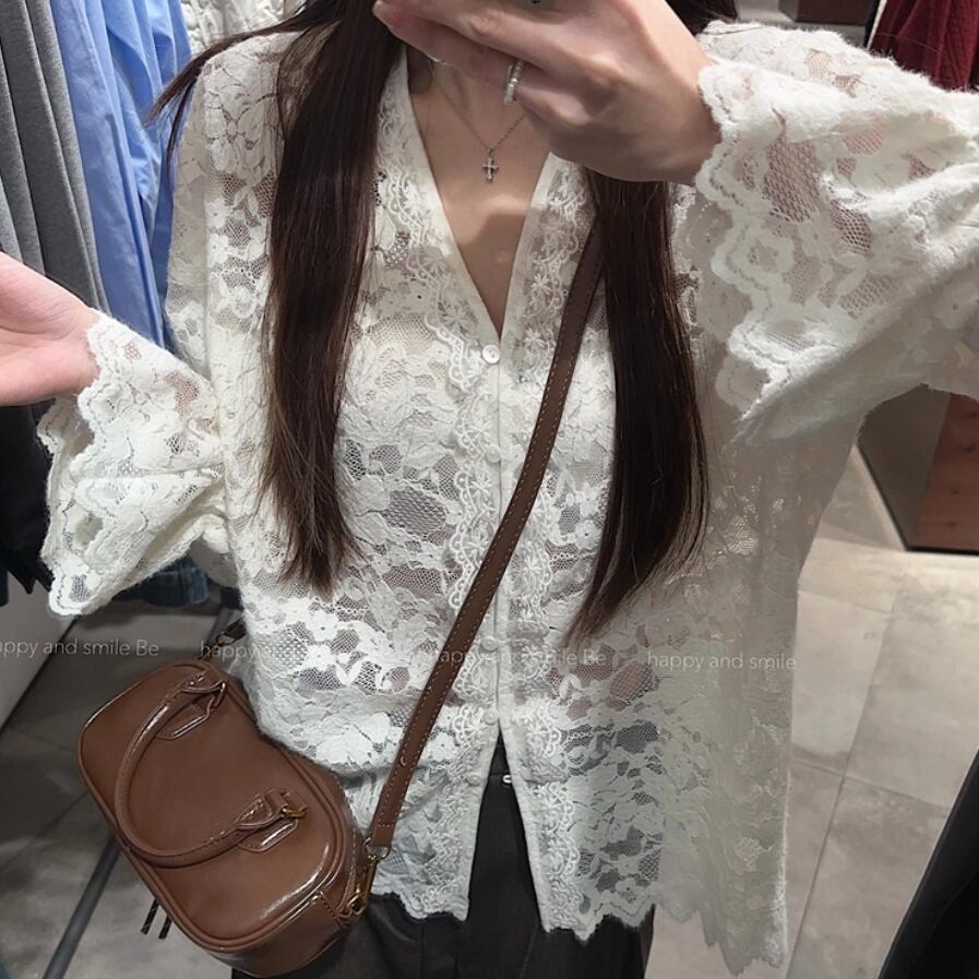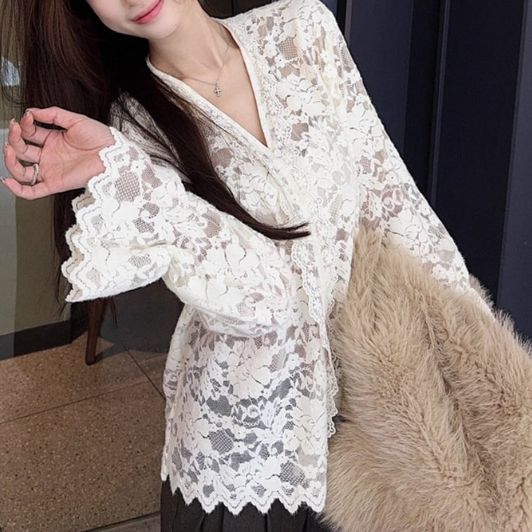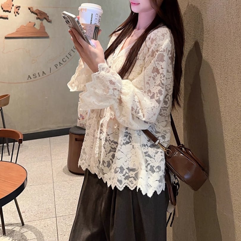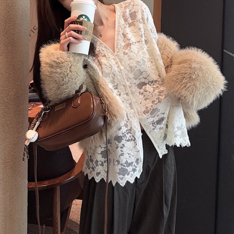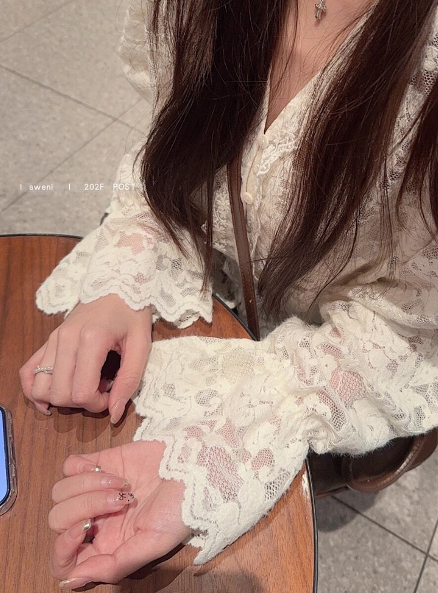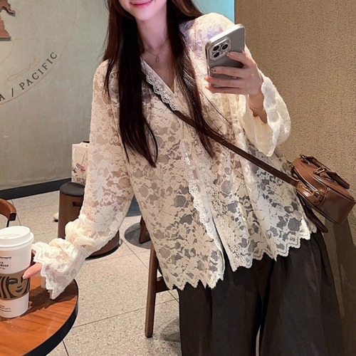 ボリュームスリーブレースラウンドカラーブラウス ・67546