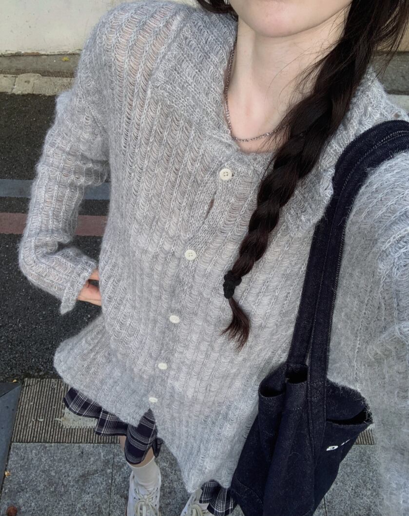 3色/リボンハニカムニットカーデ ・20306
