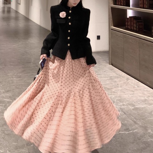 ▽Instagram「新作情報配信中」 フォローお願いいたします。 https://www.instagram.com/sucrier_closet/ ▼カラー ブラック+ピンク ▼種類 ジャケット春秋用 ジャケット秋冬用 ▼サイズ [ Sサイズ ] ジャケット:着丈59.5cm バスト92cm 肩幅40cm 袖丈61cm ウエスト72cm スカート:着丈85cm ウエスト62cm [ Mサイズ ] ジャケット:着丈60.5cm バスト96cm 肩幅41cm 袖丈62cm ウエスト76cm スカート:着丈86cm ウエスト66cm [ Lサイズ ] ジャケット:着丈61.5cm バスト100cm 肩幅42cm 袖丈63cm ウエスト80cm スカート:着丈87cm ウエスト70cm ※1-3cm程度の誤差がある場合がございます。予めご了承ください。 ▼シーズン 春,秋 ▼同じカテゴリの商品はこちら https://www.sucrier.jp/categories/1737171 ▽お支払い方法 ・クレジットカード決済 ・キャリア決済 (docomo/au/Softbank/Y!mobile) ・後払い決済 (商品お届け後コンビニ払いなど) ▽注意点 ※こちらの商品は決済から10日-3週間前後でのお届けとなります。 ※配送日時指定等に関しては、ご指定できないことご了承くださいませ。 ※できる限り早くお届けできるように手配させて頂きます。 ※検品はしておりますが、もし届いた商品に不備がありましたら、誠実に対応させていただきます。 商品ID:SC072753