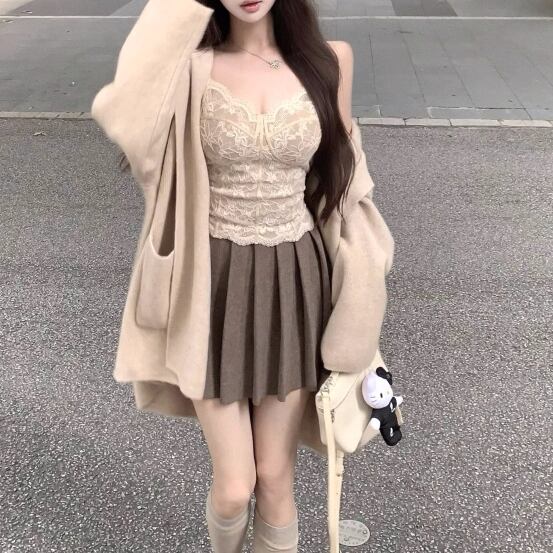 ▽Instagram「新作情報配信中」 フォローお願いいたします。 https://www.instagram.com/sucrier_closet/ ▼カラー オートミール(画像2枚目) コーヒー(画像3枚目) ▼サイズ [ Sサイズ ] カーデ:着丈75cm バスト132cm 袖丈43cm キャミ:着丈41-51cm バスト69-89cm スカート:着丈34cm ウエスト66cm ヒップ88cm [ Mサイズ ] カーデ:着丈76cm バスト136cm 袖丈44cm キャミ:着丈42-52cm バスト73-93cm スカート:着丈35cm ウエスト70cm ヒップ92cm [ Lサイズ ] カーデ:着丈77cm バスト140cm 袖丈45cm キャミ:着丈43-53cm バスト77-97cm スカート:着丈36cm ウエスト74cm ヒップ96cm ※1-3cm程度の誤差がある場合がございます。予めご了承ください。 ▼シーズン 秋,冬 ▼同じカテゴリの商品はこちら https://www.sucrier.jp/categories/1737171 ▽お支払い方法 ・クレジットカード決済 ・キャリア決済 (docomo/au/Softbank/Y!mobile) ・後払い決済 (商品お届け後コンビニ払いなど) ▽注意点 ※こちらの商品は決済から10日-3週間前後でのお届けとなります。 ※配送日時指定等に関しては、ご指定できないことご了承くださいませ。 ※できる限り早くお届けできるように手配させて頂きます。 ※検品はしておりますが、もし届いた商品に不備がありましたら、誠実に対応させていただきます。 商品ID:SC072706