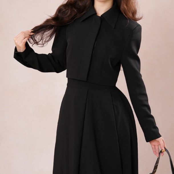 【2点セット】ショートジャケット+ファートリムティアードリボンキャミワンピ ・63097