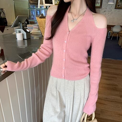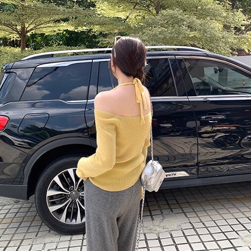 3色/クロスホルターネックニットトップス ・68656