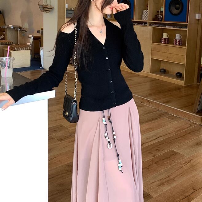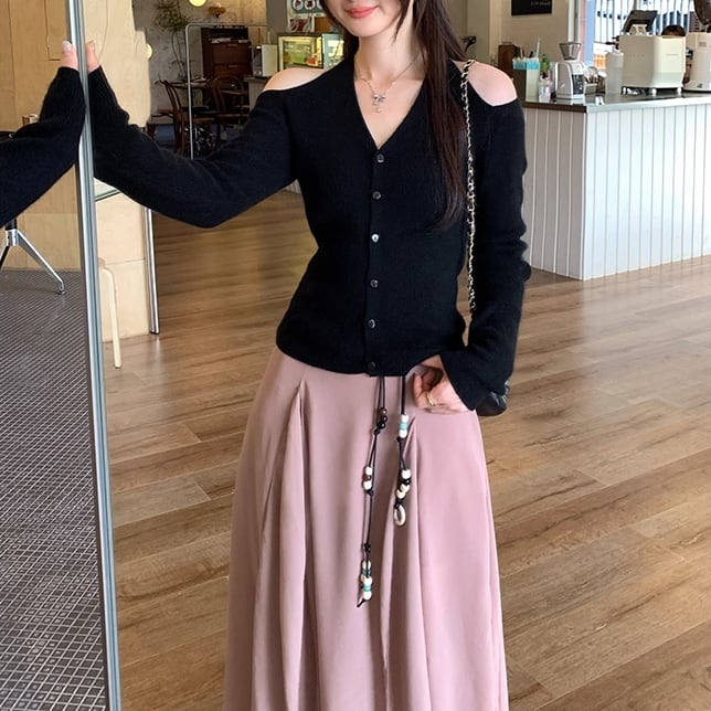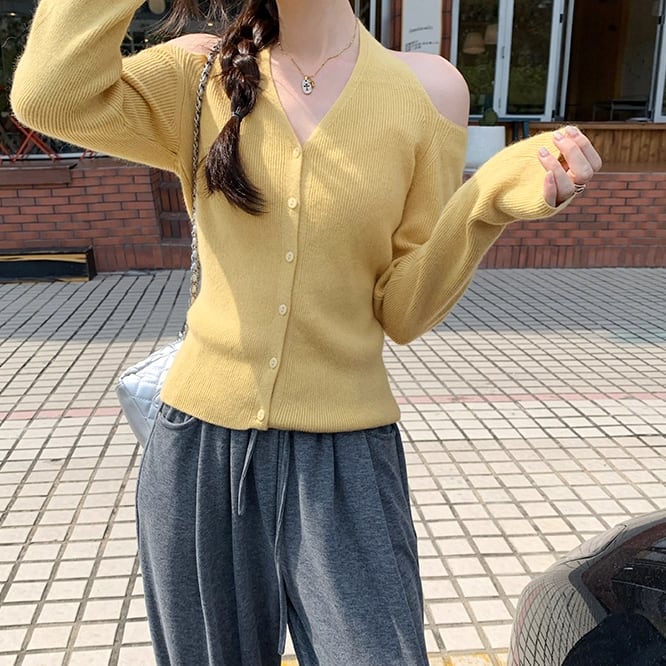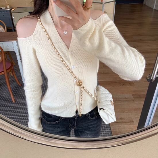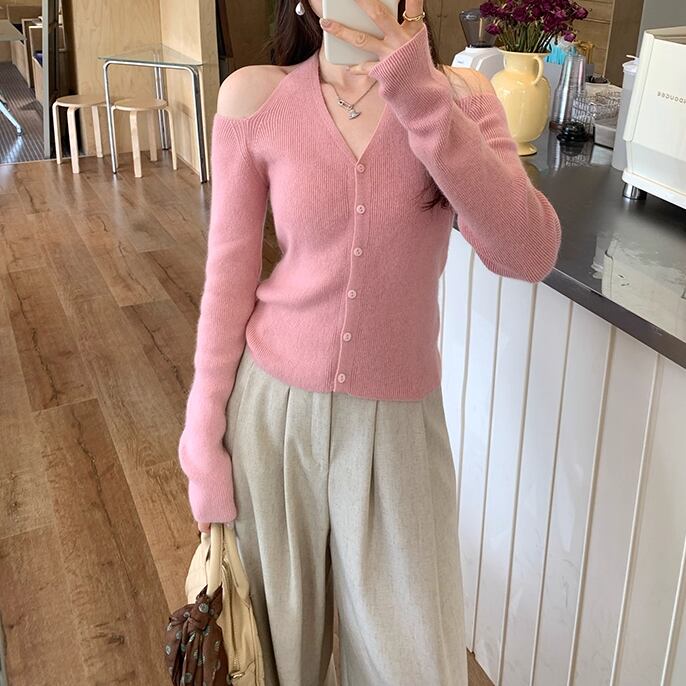 4色/Vネックフリルリボンケーブルニット ・66138