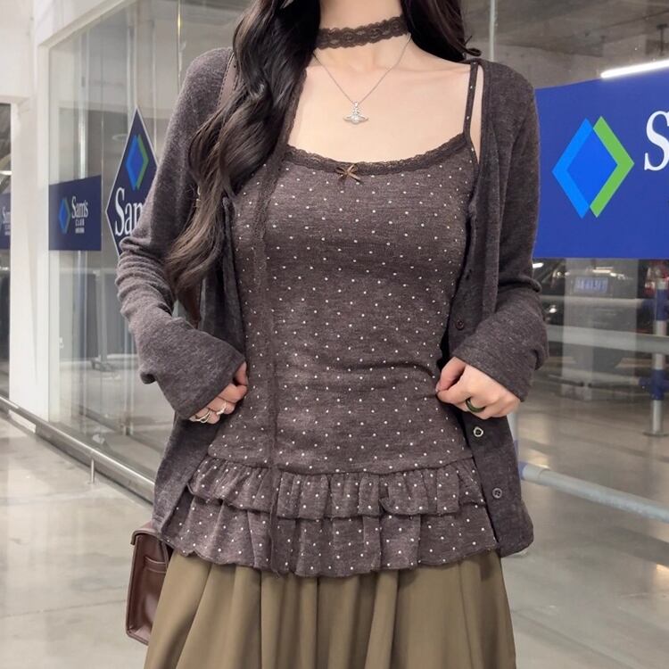 ▽Instagram「新作情報配信中」 フォローお願いいたします。 https://www.instagram.com/sucrier_closet/ ▼カラー コーヒー(画像2枚目) アプリコット(画像3枚目) ▼サイズ [ Sサイズ ] キャミ:着丈53cm バスト64cm カーデ:着丈53cm バスト76cm 袖丈60cm [ Mサイズ ] キャミ:着丈54cm バスト66cm カーデ:着丈54cm バスト80cm 袖丈61cm [ Lサイズ ] キャミ:着丈55cm バスト68cm カーデ:着丈55cm バスト84cm 袖丈62cm ※1-3cm程度の誤差がある場合がございます。予めご了承ください。 ▼シーズン 秋,冬 ▼同じカテゴリの商品はこちら https://www.sucrier.jp/categories/1737171 ▽お支払い方法 ・クレジットカード決済 ・キャリア決済 (docomo/au/Softbank/Y!mobile) ・後払い決済 (商品お届け後コンビニ払いなど) ▽注意点 ※こちらの商品は決済から10日-3週間前後でのお届けとなります。 ※配送日時指定等に関しては、ご指定できないことご了承くださいませ。 ※できる限り早くお届けできるように手配させて頂きます。 ※検品はしておりますが、もし届いた商品に不備がありましたら、誠実に対応させていただきます。 商品ID:SC072873