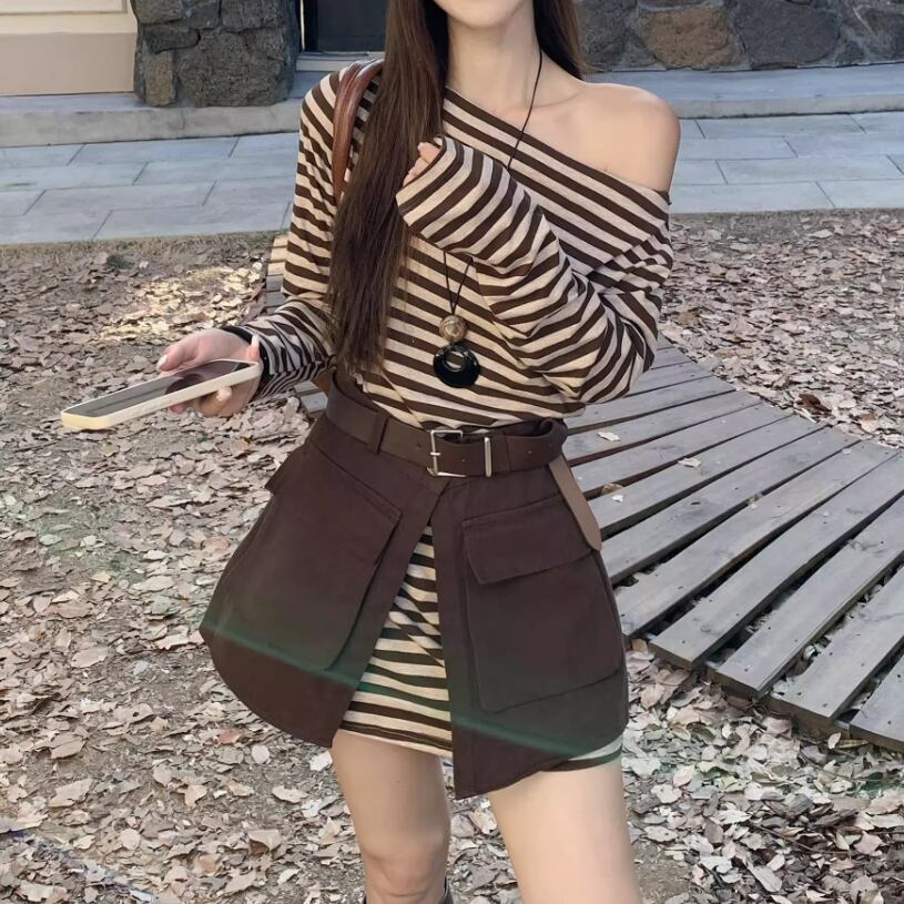 【2点セット】配色リボンヘムフリルワンピ+フリルストラップフレアジャンスカ ・50112