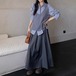 【2点セット】配色リボンヘムフリルワンピ+フリルストラップフレアジャンスカ ・50112