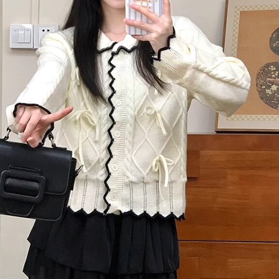 3色/リボンハニカムニットカーデ ・20306
