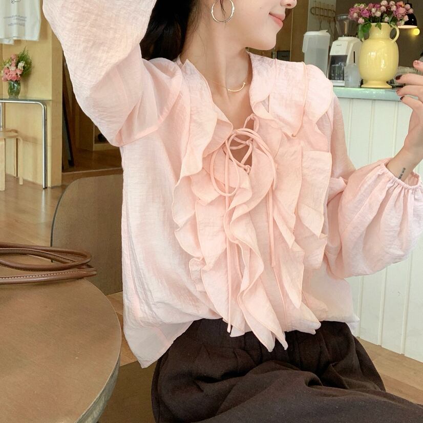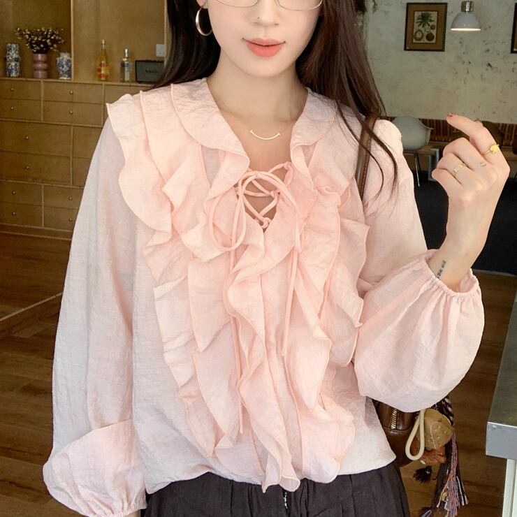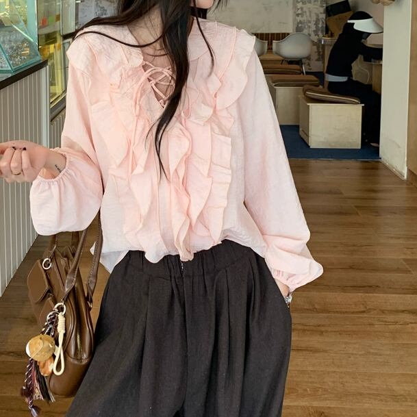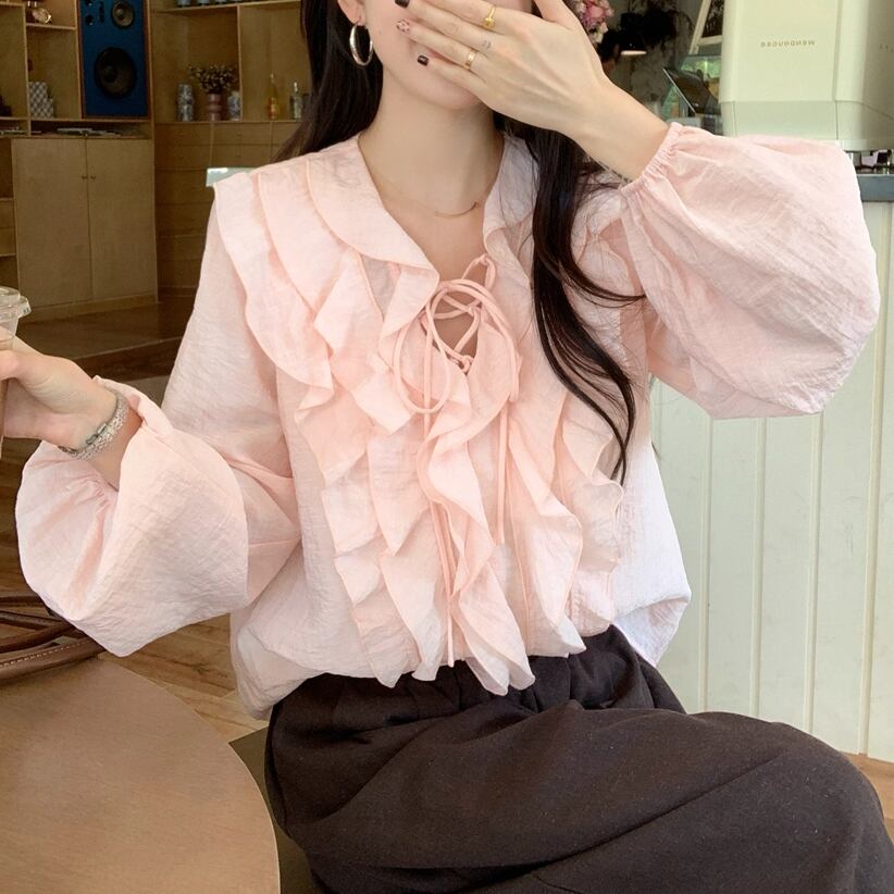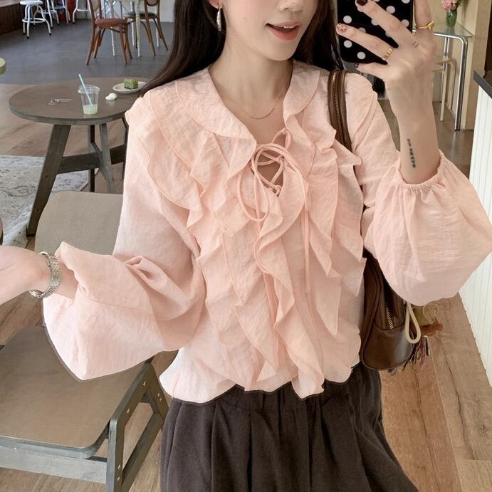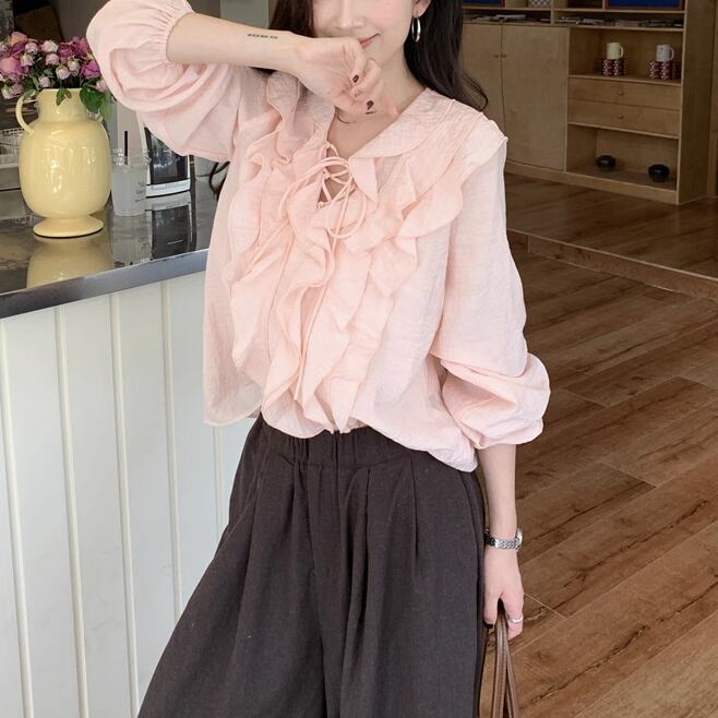 ボリュームスリーブレースラウンドカラーブラウス ・67546