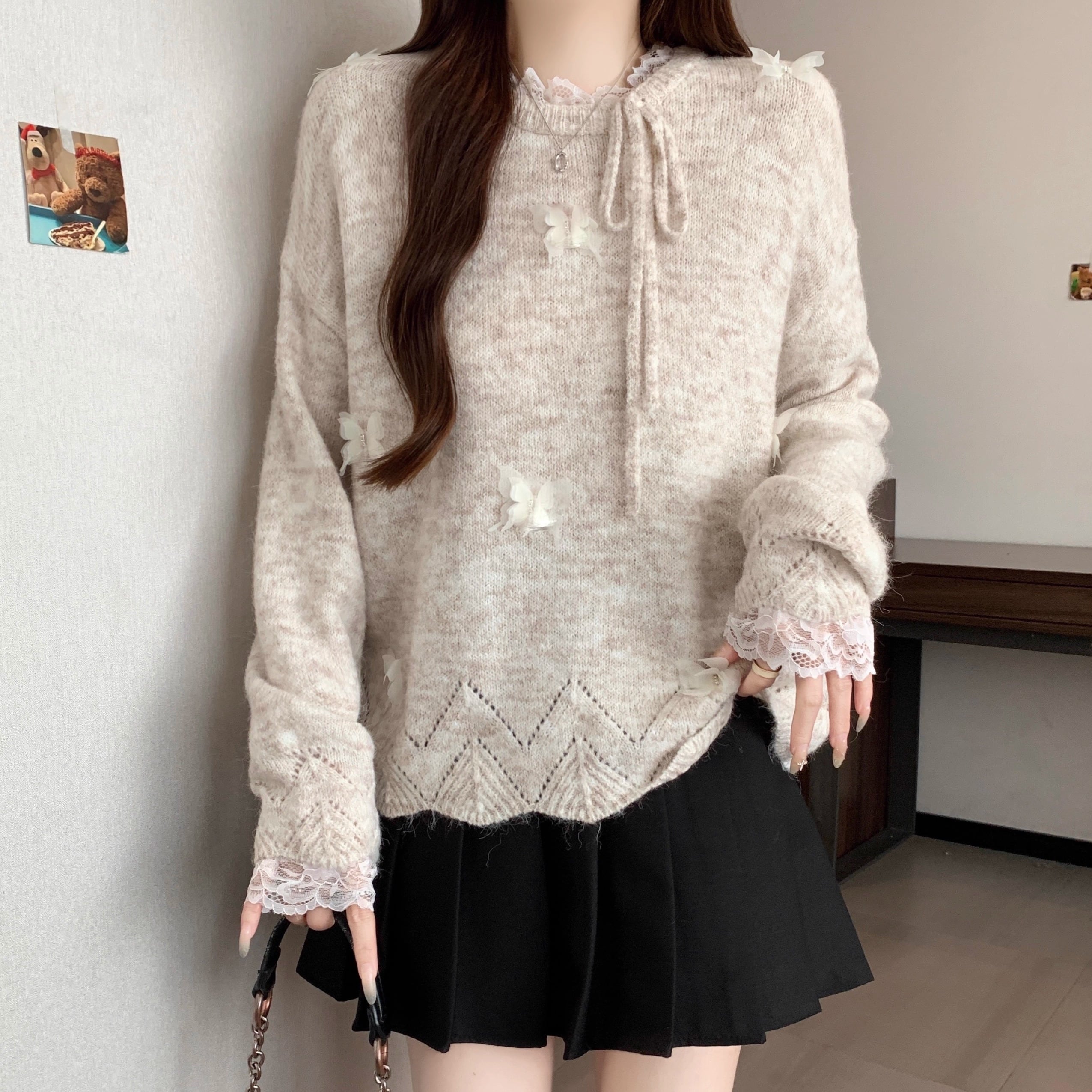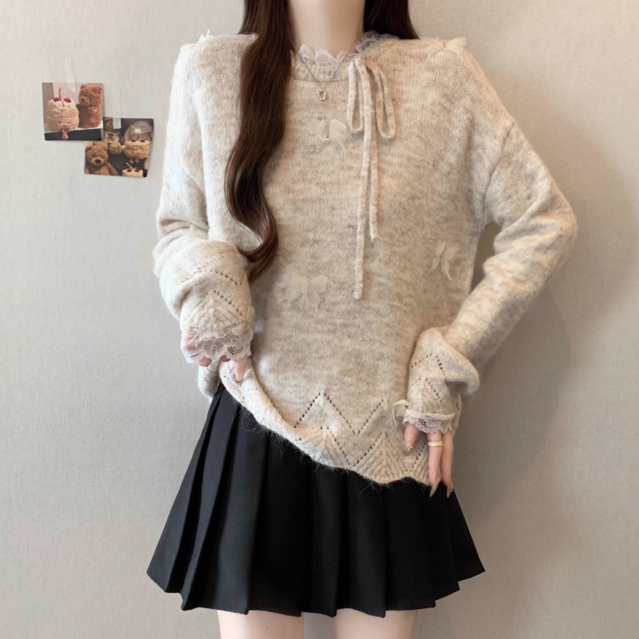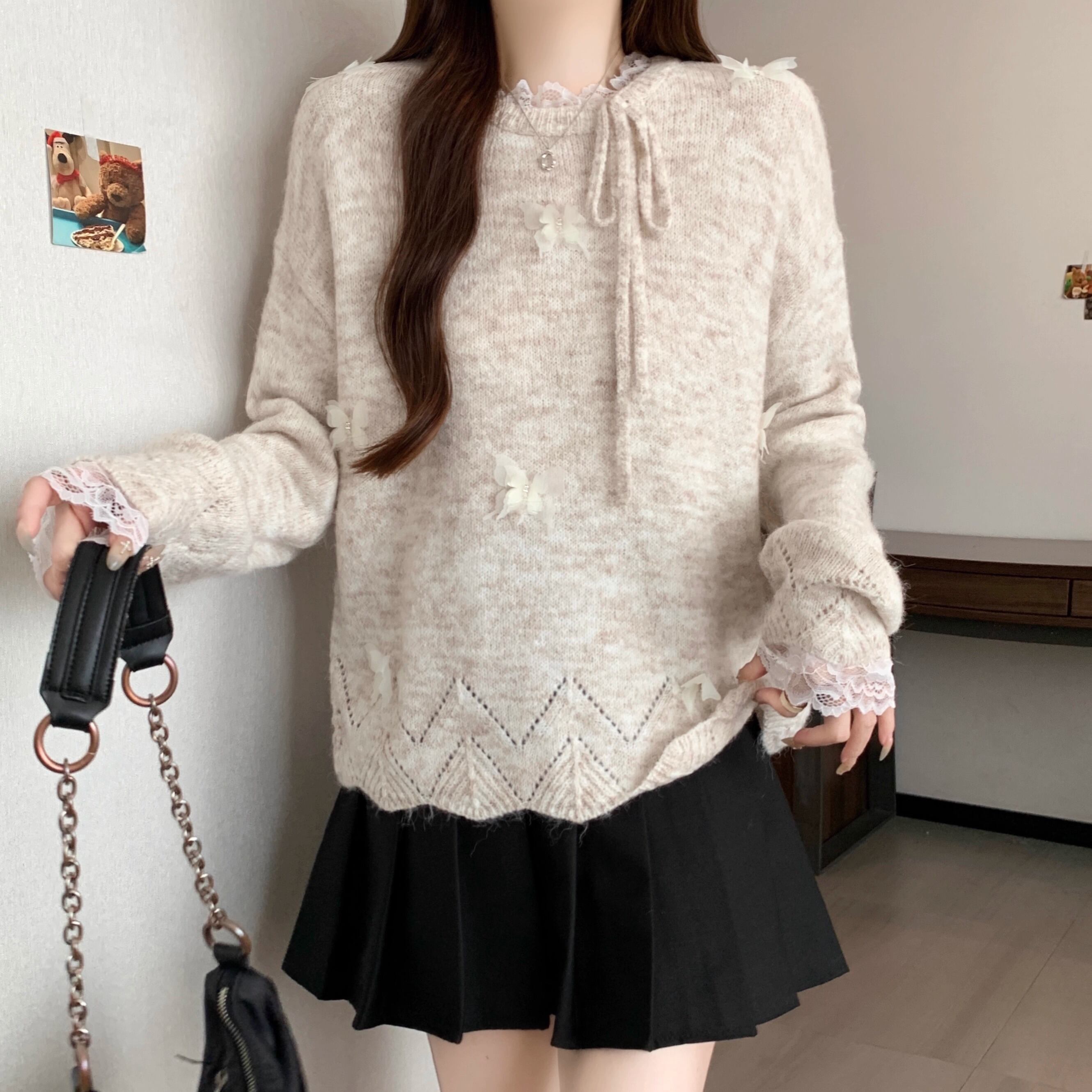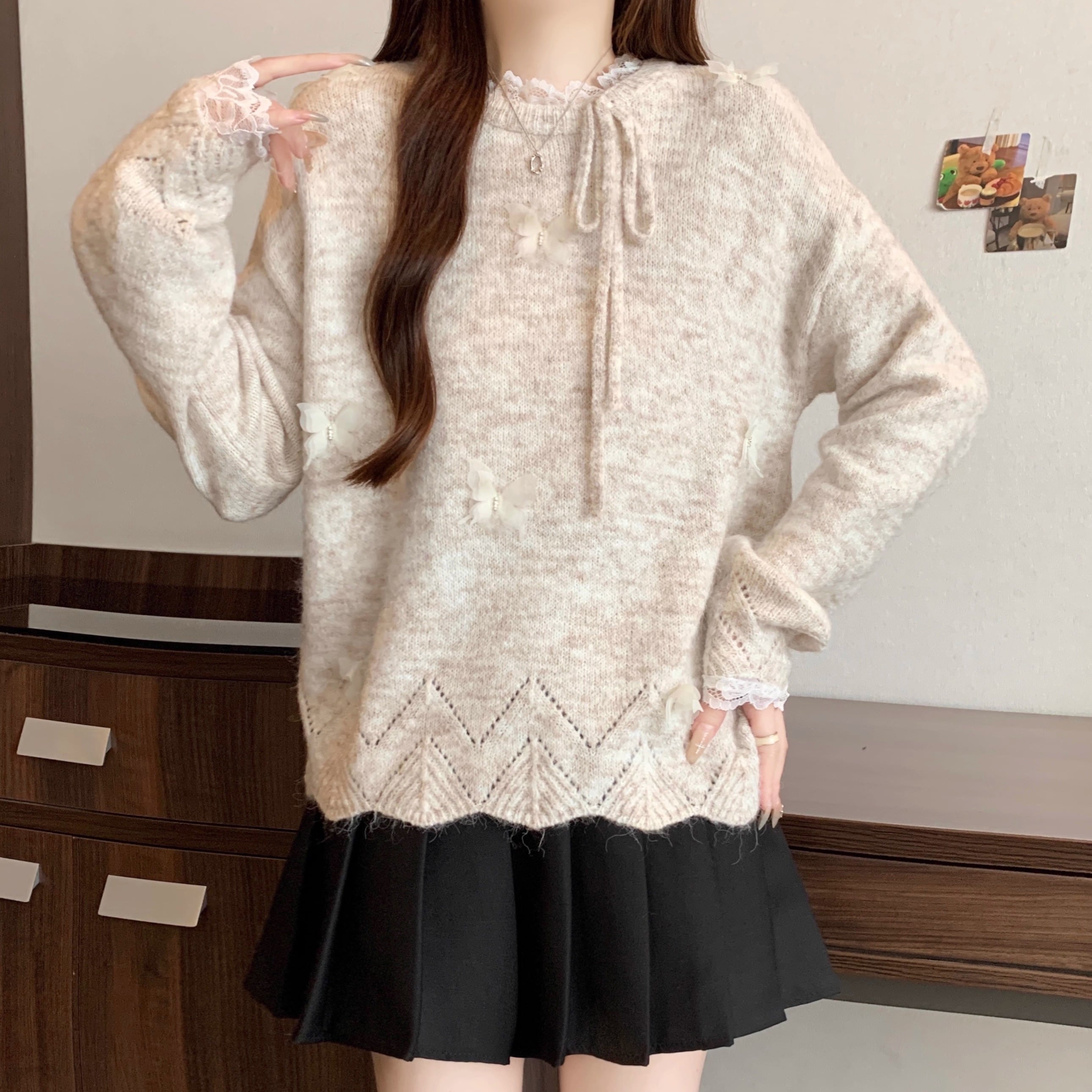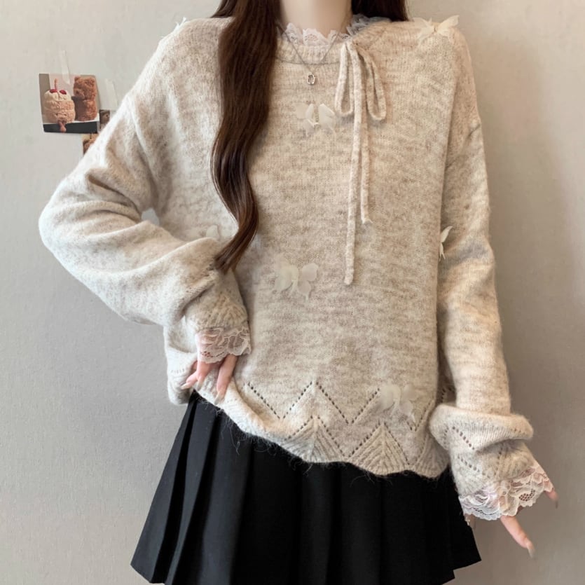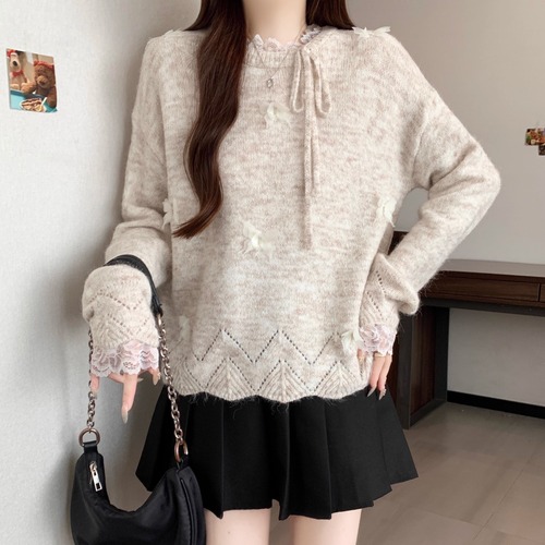 2色/レースセーラーカラーリボンニットカーデ ・73017
