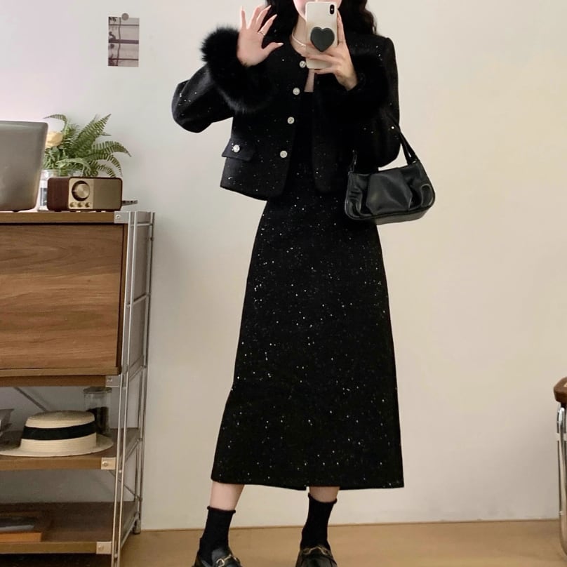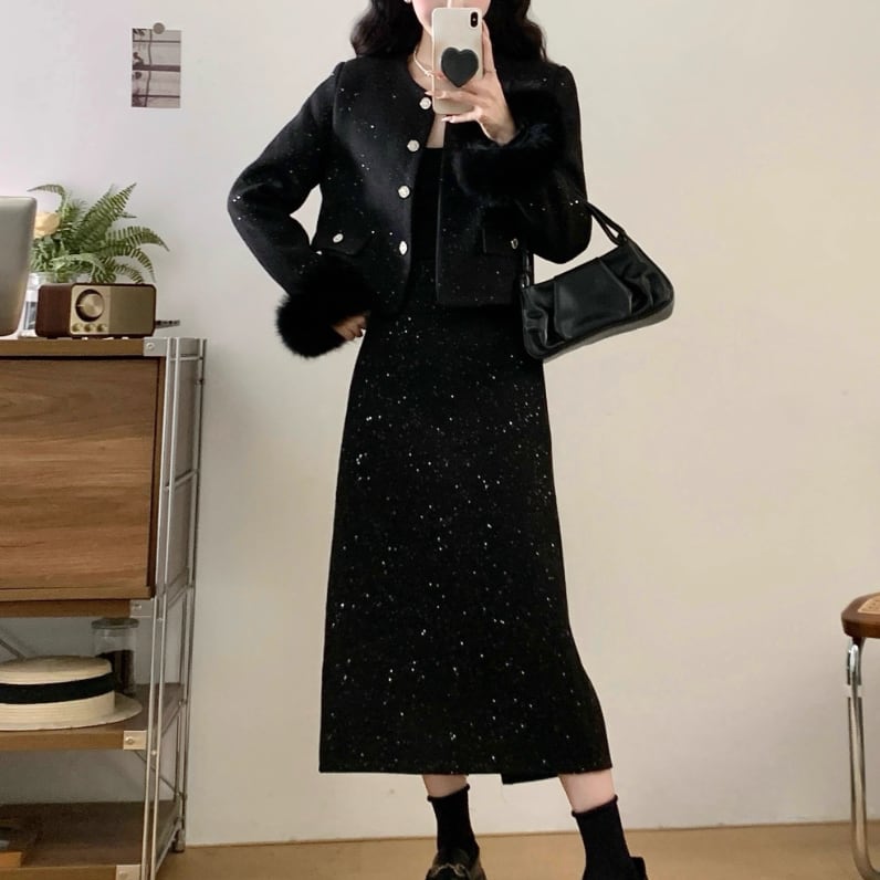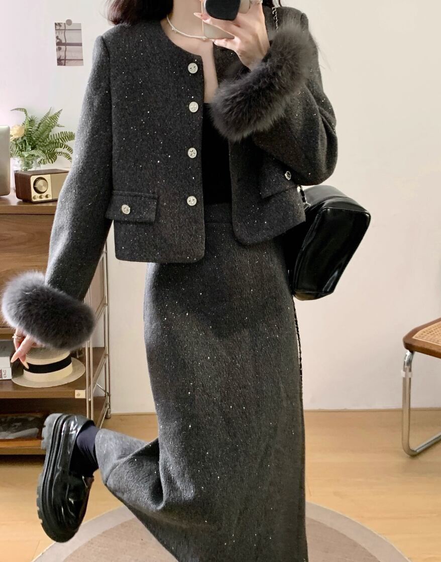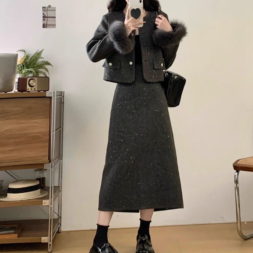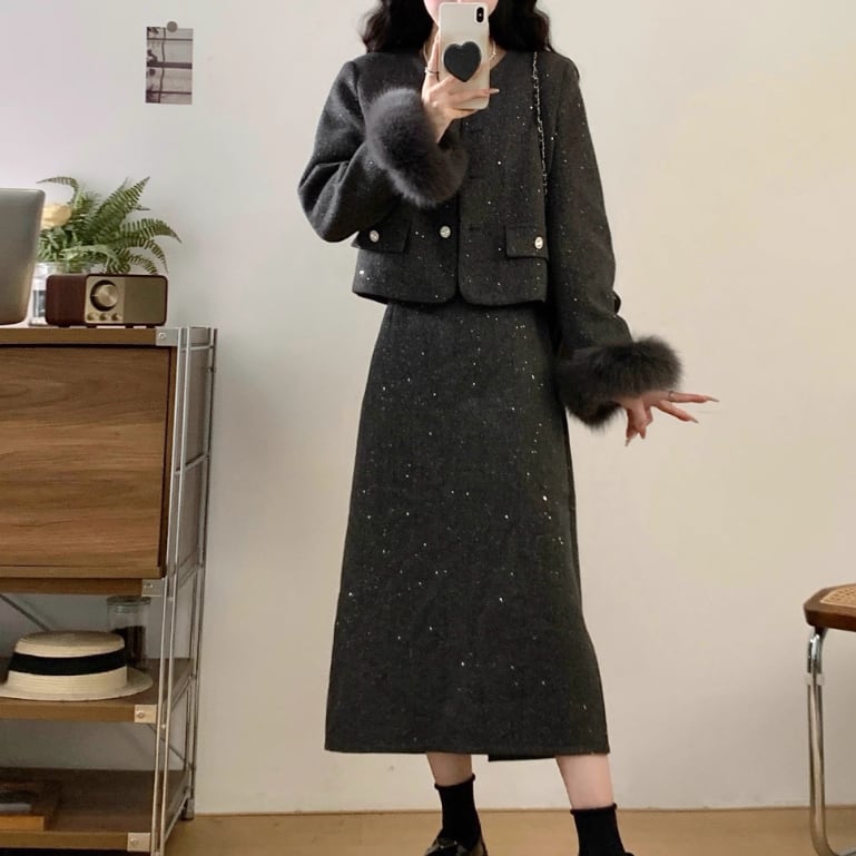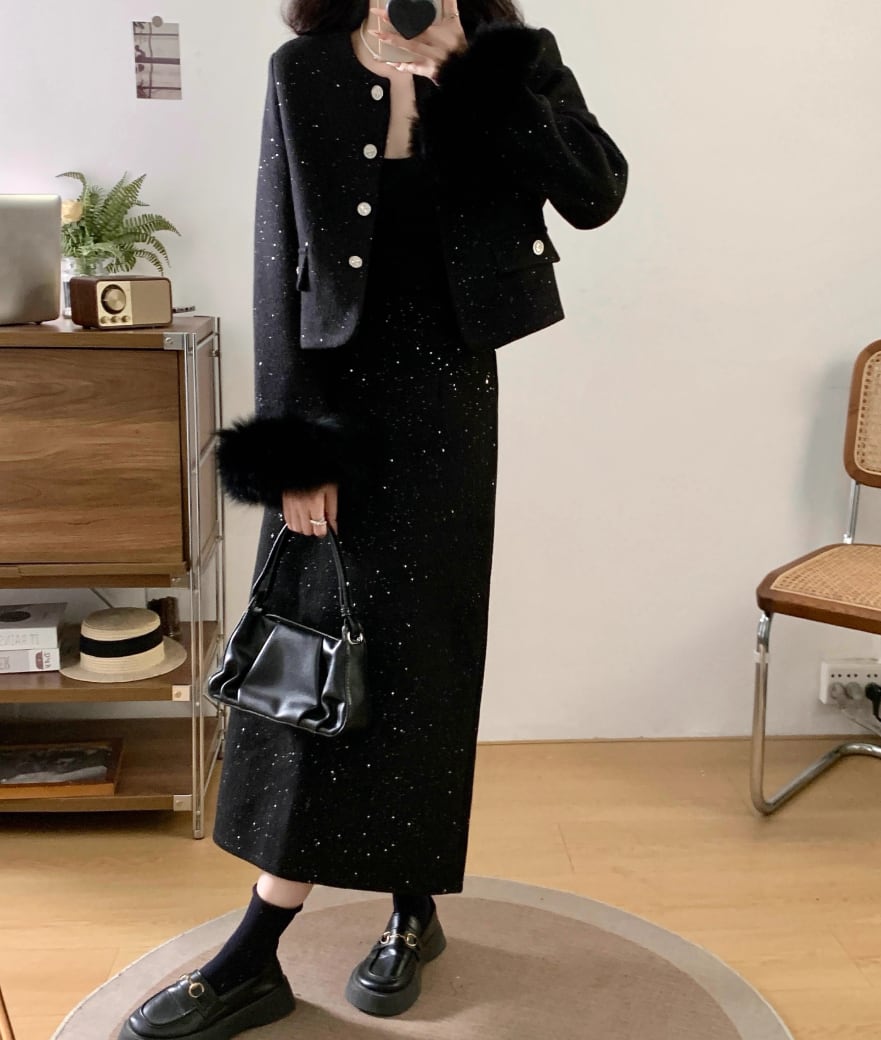 ▽Instagram「新作情報配信中」 フォローお願いいたします。 https://www.instagram.com/sucrier_closet/ ▼カラー ブラック(画像2枚目) グレー(画像3枚目) ▼種類 ロング ミニ ▼サイズ [ Lサイズ ] ジャケット:着丈47cm バスト100cm 肩幅39cm 袖丈56cm ロングスカート:着丈79cm ウエスト70cm ミニスカート:着丈46cm ウエスト70cm [ XLサイズ ] ジャケット:着丈48cm バスト105cm 肩幅40cm 袖丈57cm ロングスカート:着丈80cm ウエスト74cm ミニスカート:着丈47cm ウエスト74cm [ 2XLサイズ ] ジャケット:着丈49cm バスト110cm 肩幅41cm 袖丈58cm ロングスカート:着丈81cm ウエスト78cm ミニスカート:着丈48cm ウエスト78cm [ 3XLサイズ ] ジャケット:着丈50cm バスト115cm 肩幅42cm 袖丈59cm ロングスカート:着丈82cm ウエスト82cm ミニスカート:着丈49cm ウエスト82cm [ 4XLサイズ ] ジャケット:着丈51cm バスト120cm 肩幅43cm 袖丈60cm ロングスカート:着丈83cm ウエスト86cm ミニスカート:着丈50cm ウエスト86cm ※1-3cm程度の誤差がある場合がございます。予めご了承ください。 ▼内容 スカートウエストは伸縮性あり ▼シーズン 秋冬 ▼同じカテゴリの商品はこちら https://www.sucrier.jp/categories/1737171 ▽お支払い方法 ・クレジットカード決済 ・キャリア決済 (docomo/au/Softbank/Y!mobile) ・後払い決済 (商品お届け後コンビニ払いなど) ▽注意点 ※こちらの商品は決済から10日-3週間前後でのお届けとなります。 ※配送日時指定等に関しては、ご指定できないことご了承くださいませ。 ※できる限り早くお届けできるように手配させて頂きます。 ※検品はしておりますが、もし届いた商品に不備がありましたら、誠実に対応させていただきます。 商品ID:SC073012