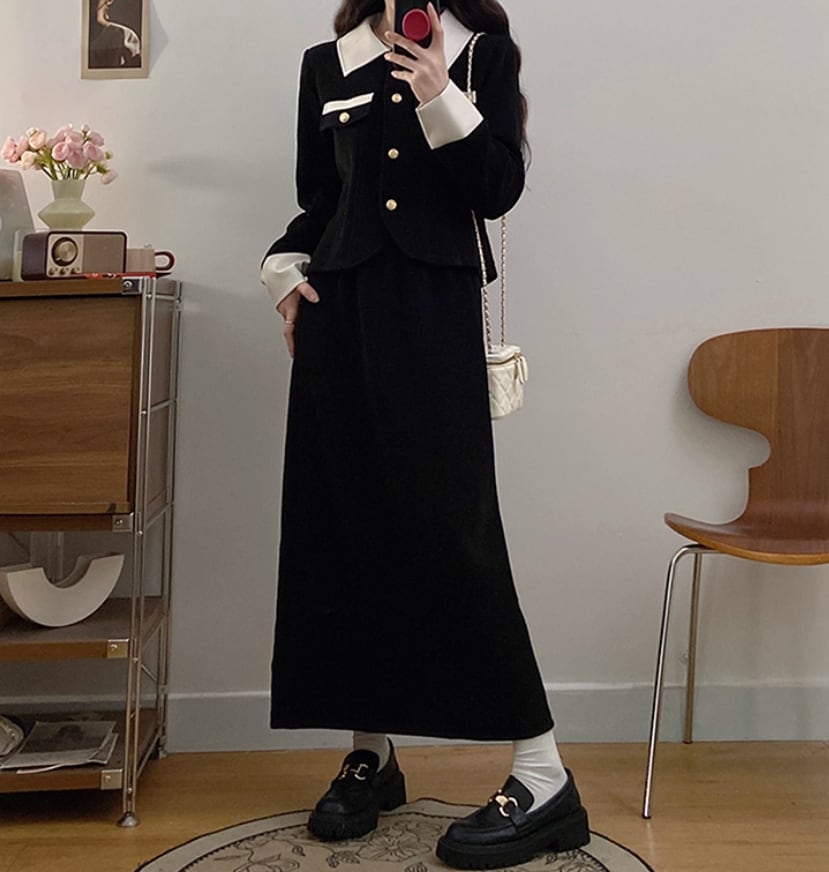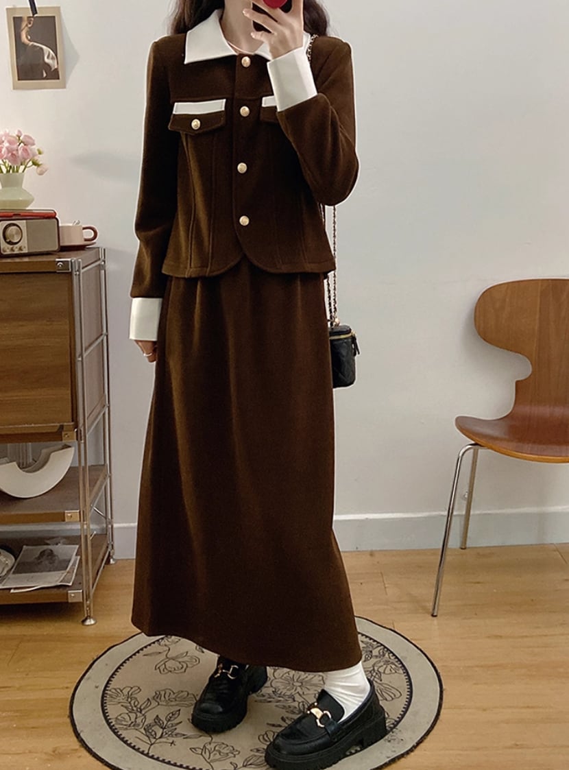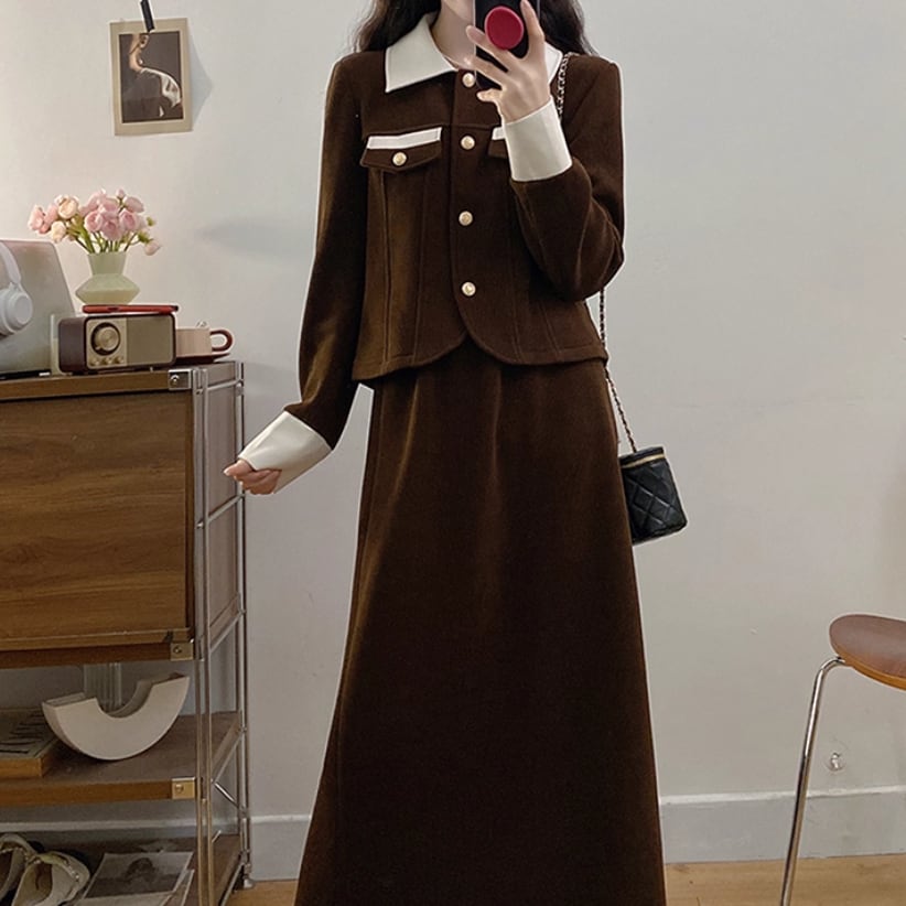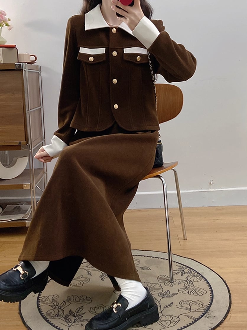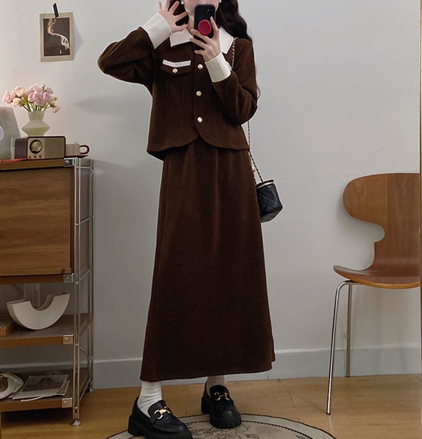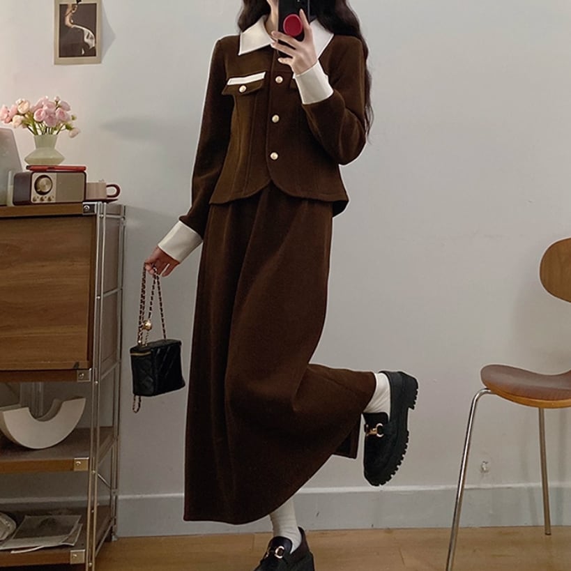 ▽Instagram「新作情報配信中」 フォローお願いいたします。 https://www.instagram.com/sucrier_closet/ ▼カラー ブラウン(画像2枚目) ブラック(画像3枚目) ▼サイズ [ Lサイズ ] ジャケット:着丈54cm バスト100cm 肩幅41cm 袖丈59cm スカート:着丈84cm ウエスト70cm ヒップ102cm [ XLサイズ ] ジャケット:着丈55cm バスト106cm 肩幅42.5cm 袖丈60cm スカート:着丈85cm ウエスト75cm ヒップ108cm [ 2XLサイズ ] ジャケット:着丈56cm バスト112cm 肩幅44cm 袖丈61cm スカート:着丈86cm ウエスト80cm ヒップ114cm [ 3XLサイズ ] ジャケット:着丈57cm バスト118cm 肩幅45.5cm 袖丈62cm スカート:着丈87cm ウエスト85cm ヒップ120cm [ 4XLサイズ ] ジャケット:着丈58cm バスト124cm 肩幅47cm 袖丈63cm スカート:着丈88cm ウエスト90cm ヒップ126cm ※1-3cm程度の誤差がある場合がございます。予めご了承ください。 ▼シーズン 秋冬 ▼同じカテゴリの商品はこちら https://www.sucrier.jp/categories/1737171 ▽お支払い方法 ・クレジットカード決済 ・キャリア決済 (docomo/au/Softbank/Y!mobile) ・後払い決済 (商品お届け後コンビニ払いなど) ▽注意点 ※こちらの商品は決済から10日-3週間前後でのお届けとなります。 ※配送日時指定等に関しては、ご指定できないことご了承くださいませ。 ※できる限り早くお届けできるように手配させて頂きます。 ※検品はしておりますが、もし届いた商品に不備がありましたら、誠実に対応させていただきます。 商品ID:SC073009
