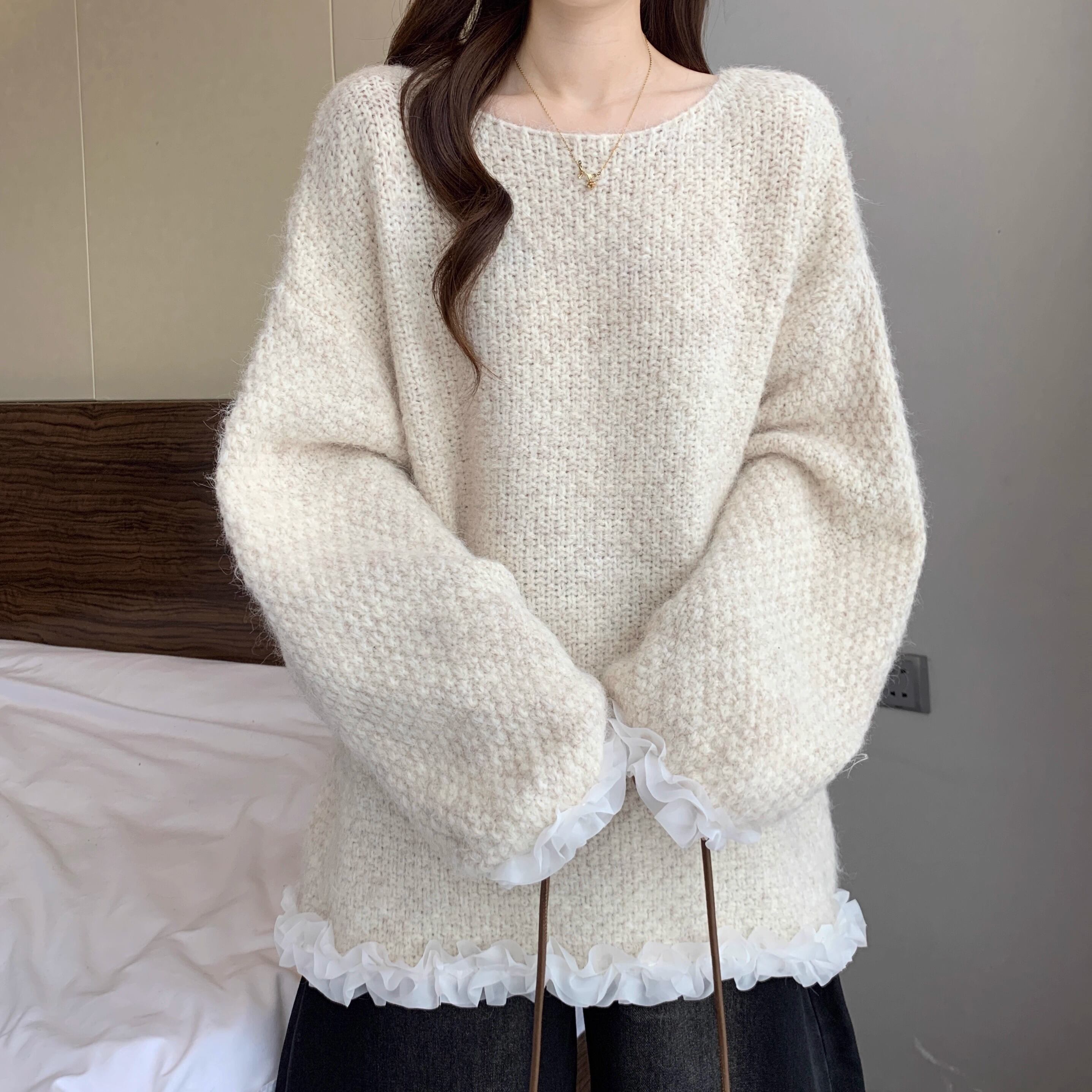 2色/オープンショルダーボーダーモヘアニット ・72999