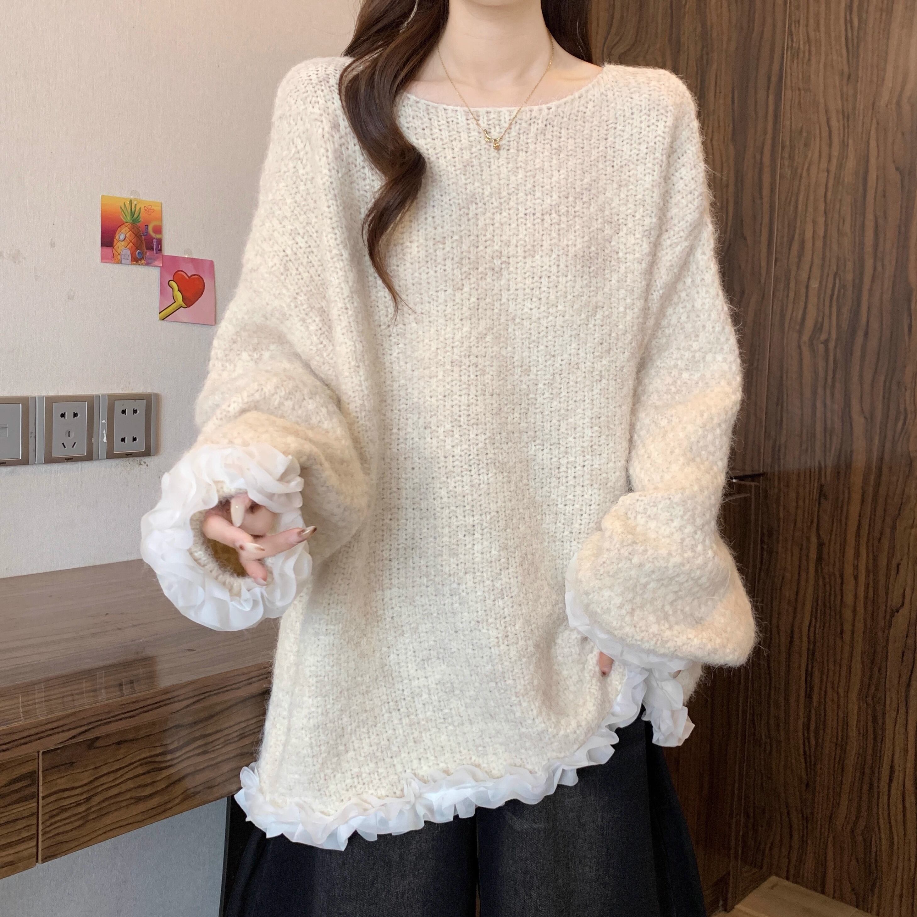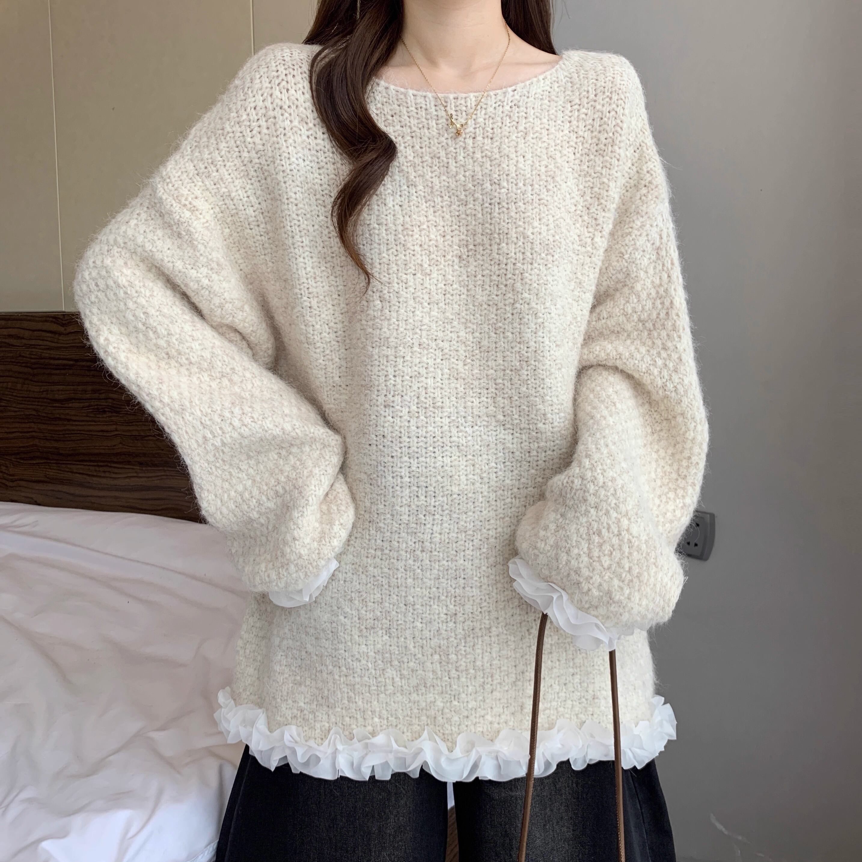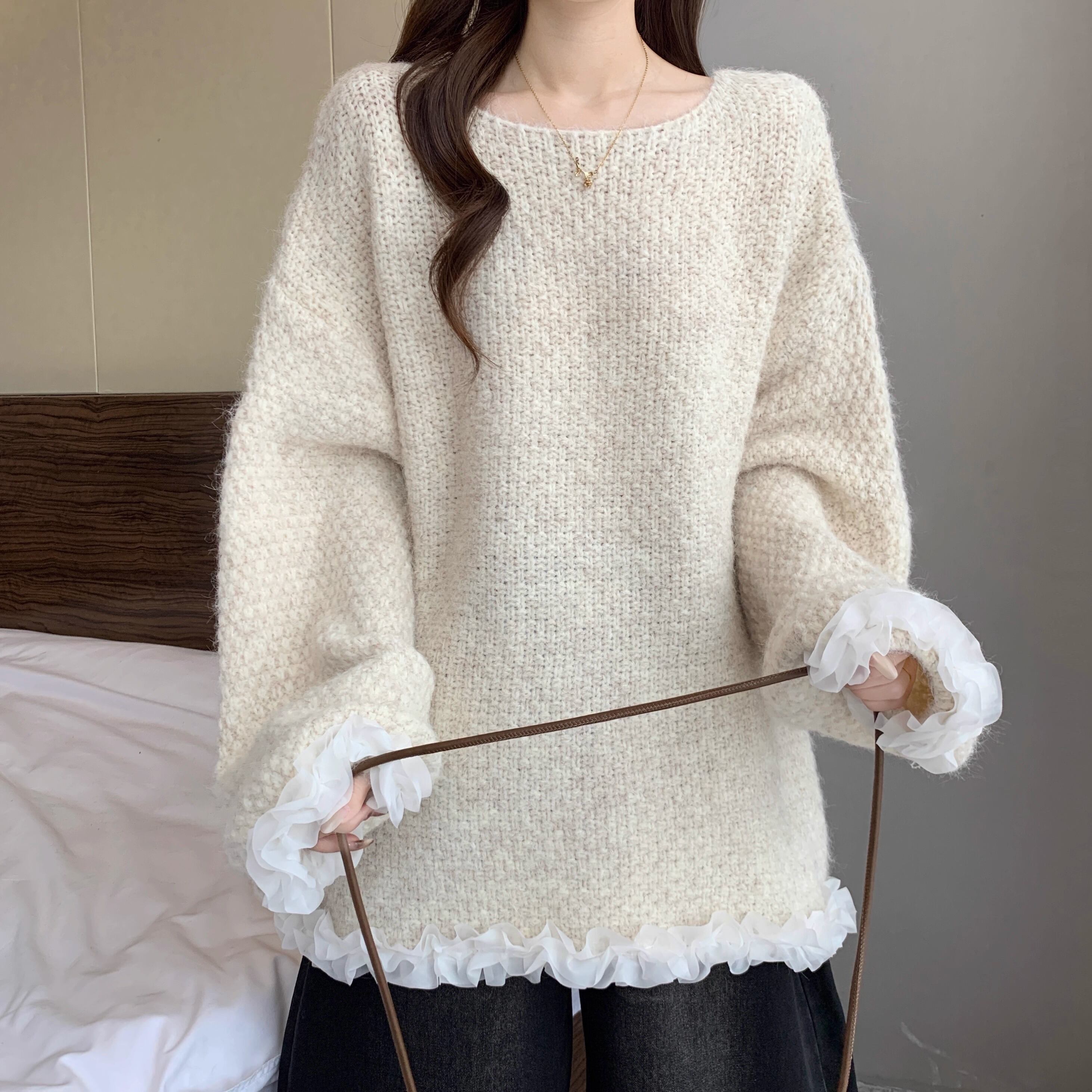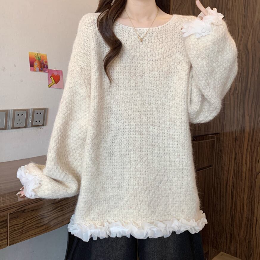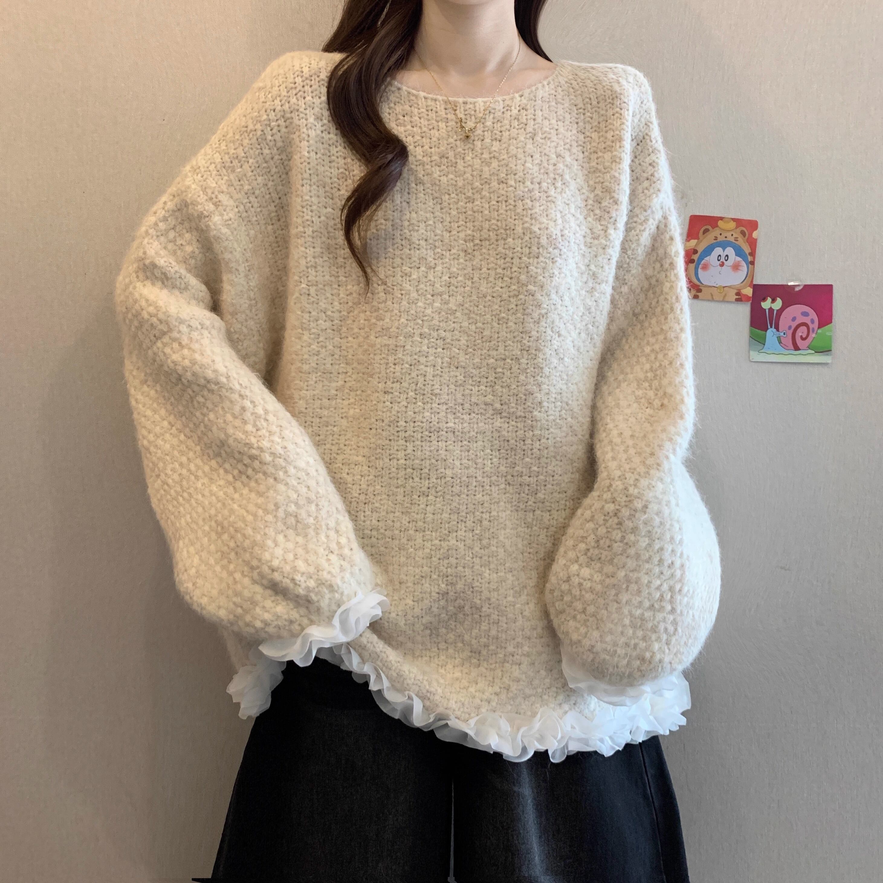 2色/クロシェフラワースカラップヘムニットトップス ・73000