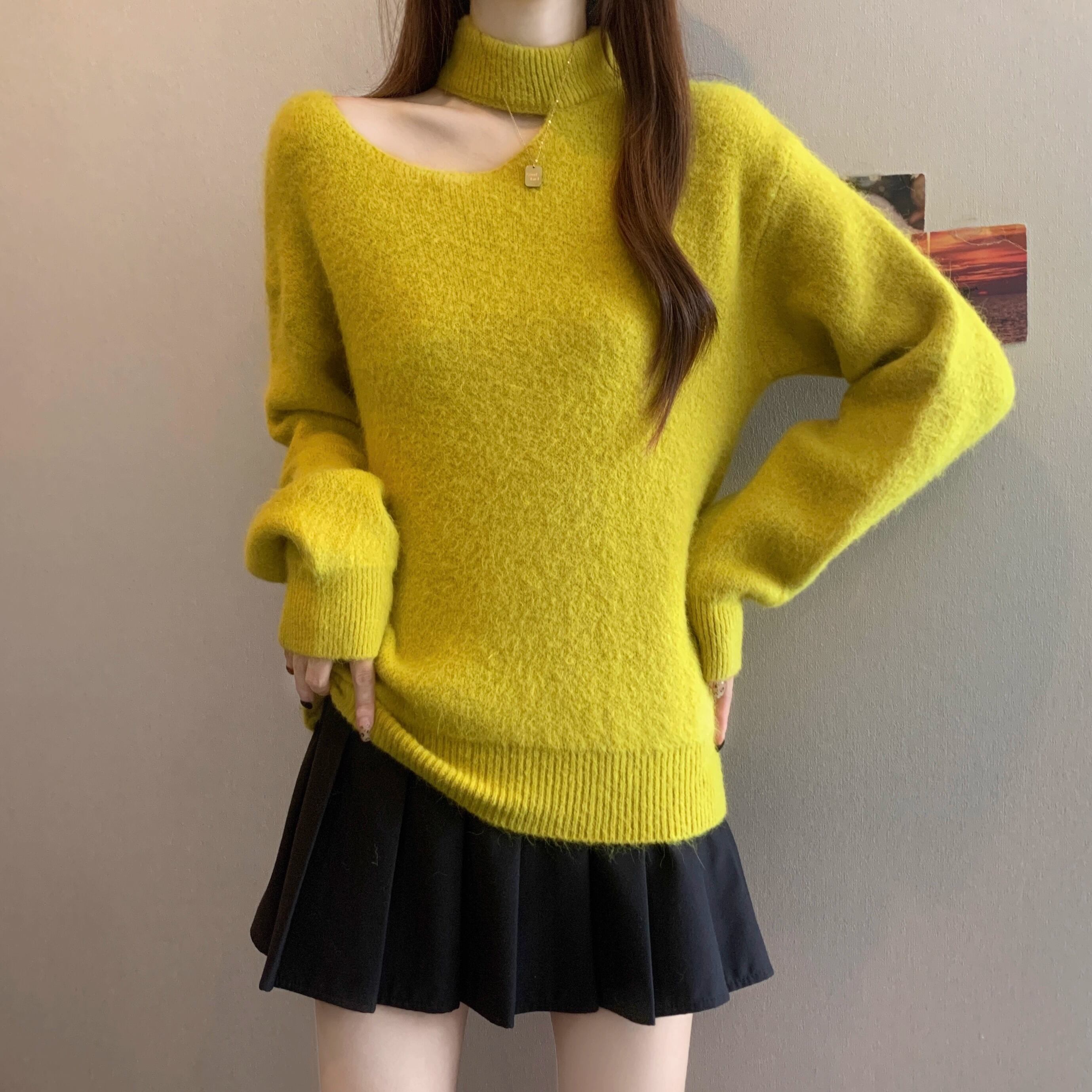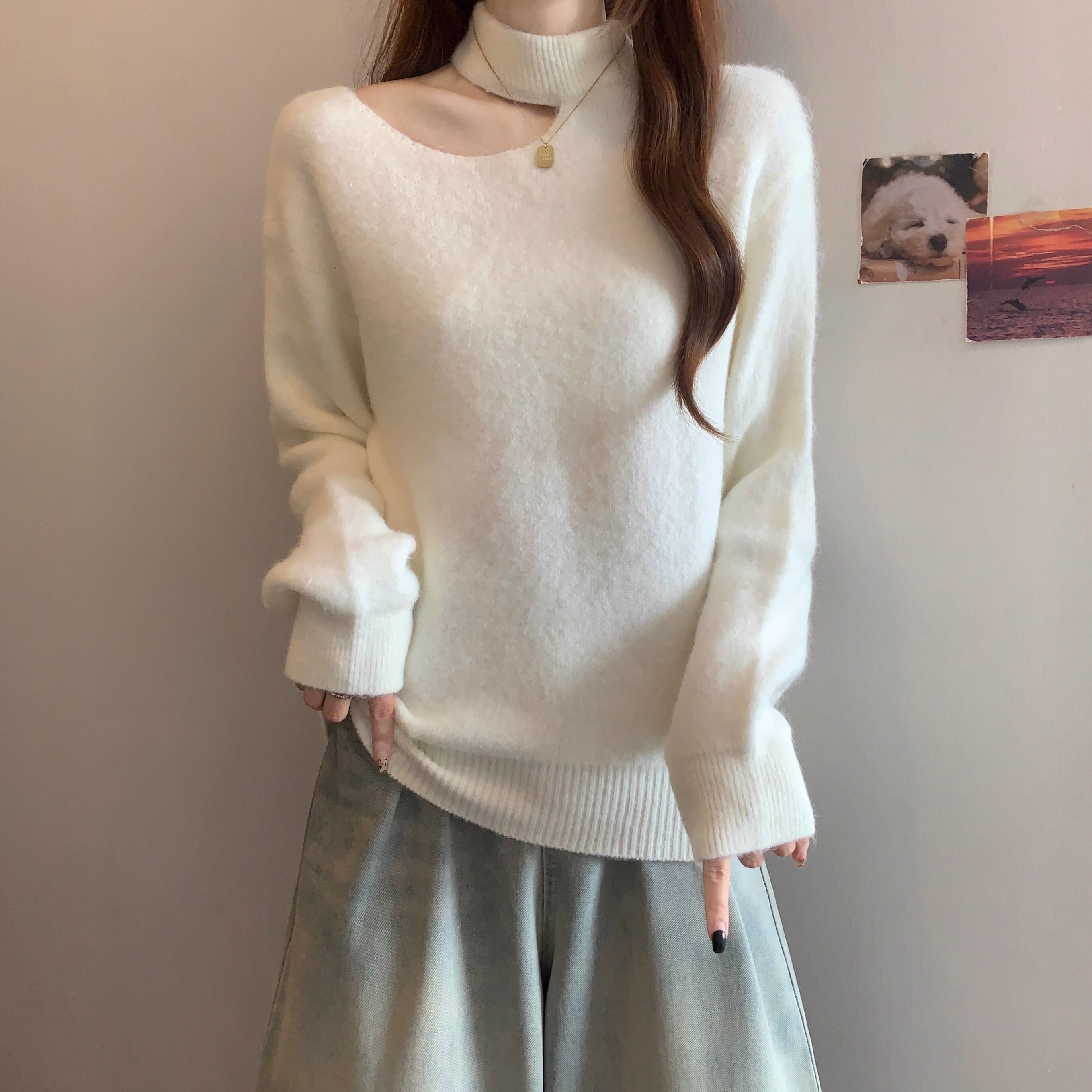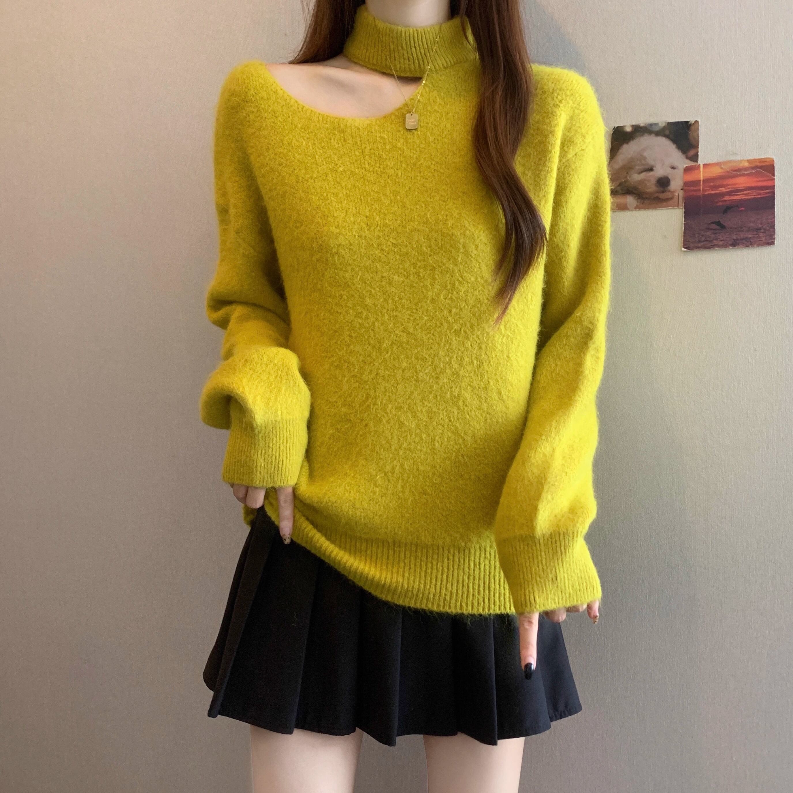 3色/スキッパーカラーケーブルニットトップス ・72990