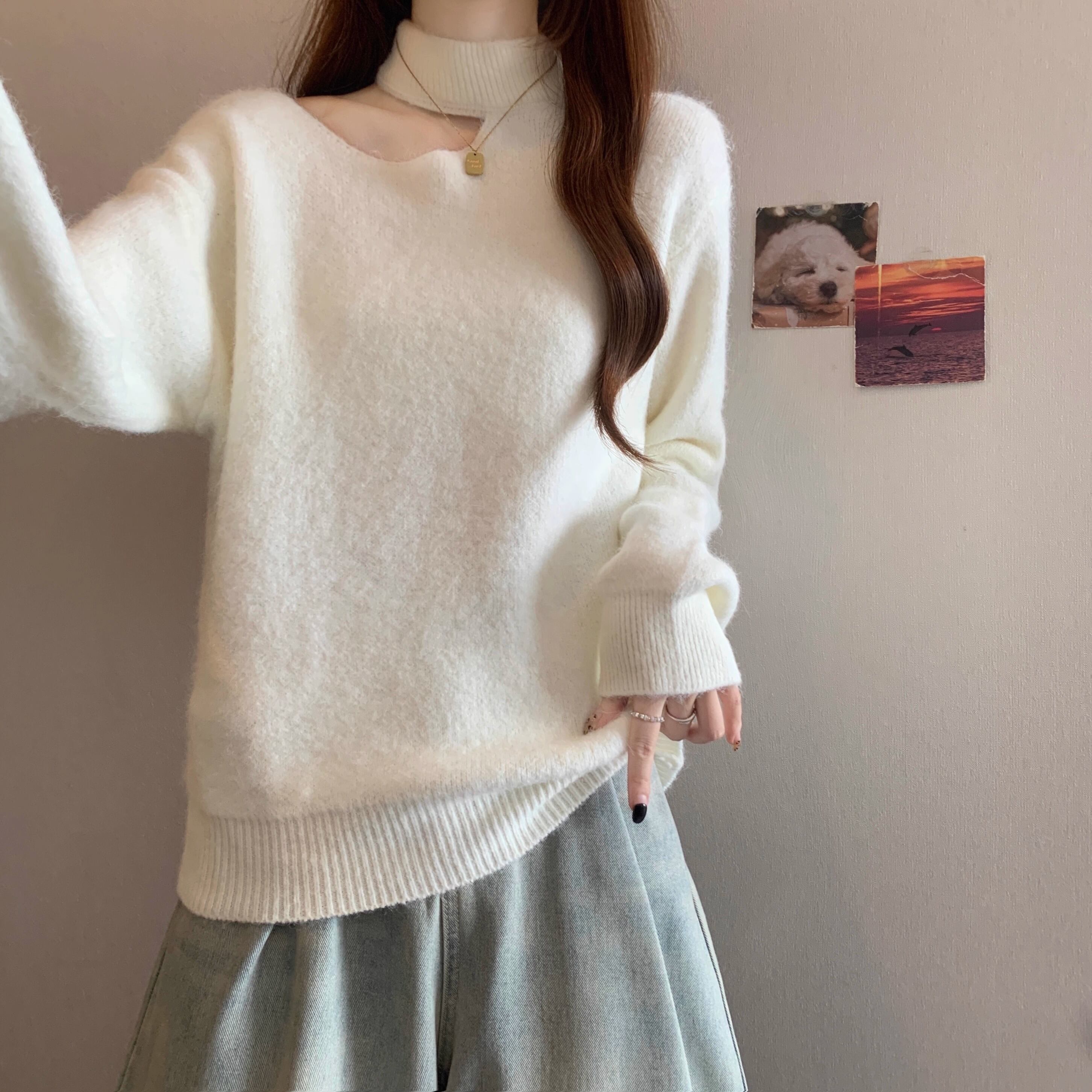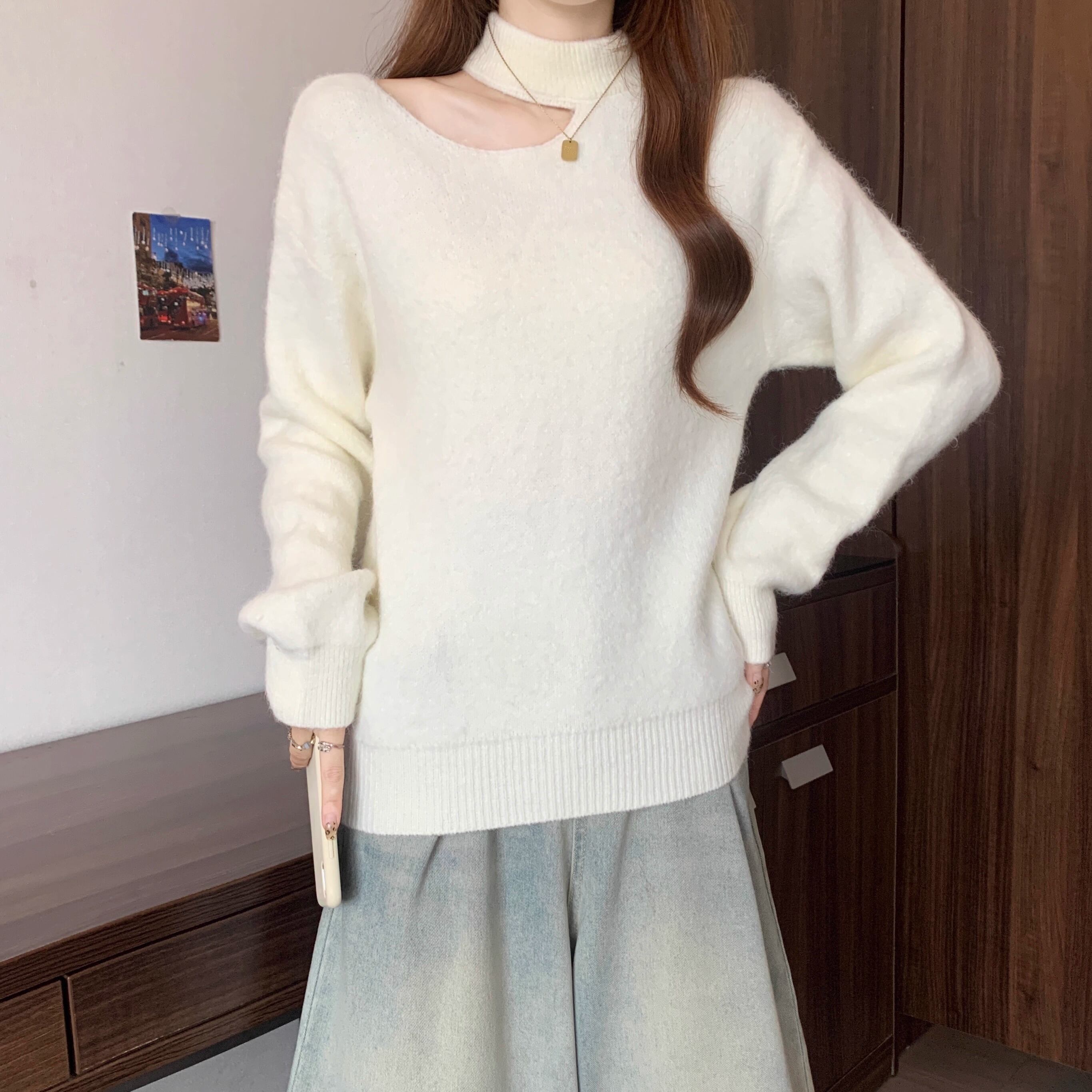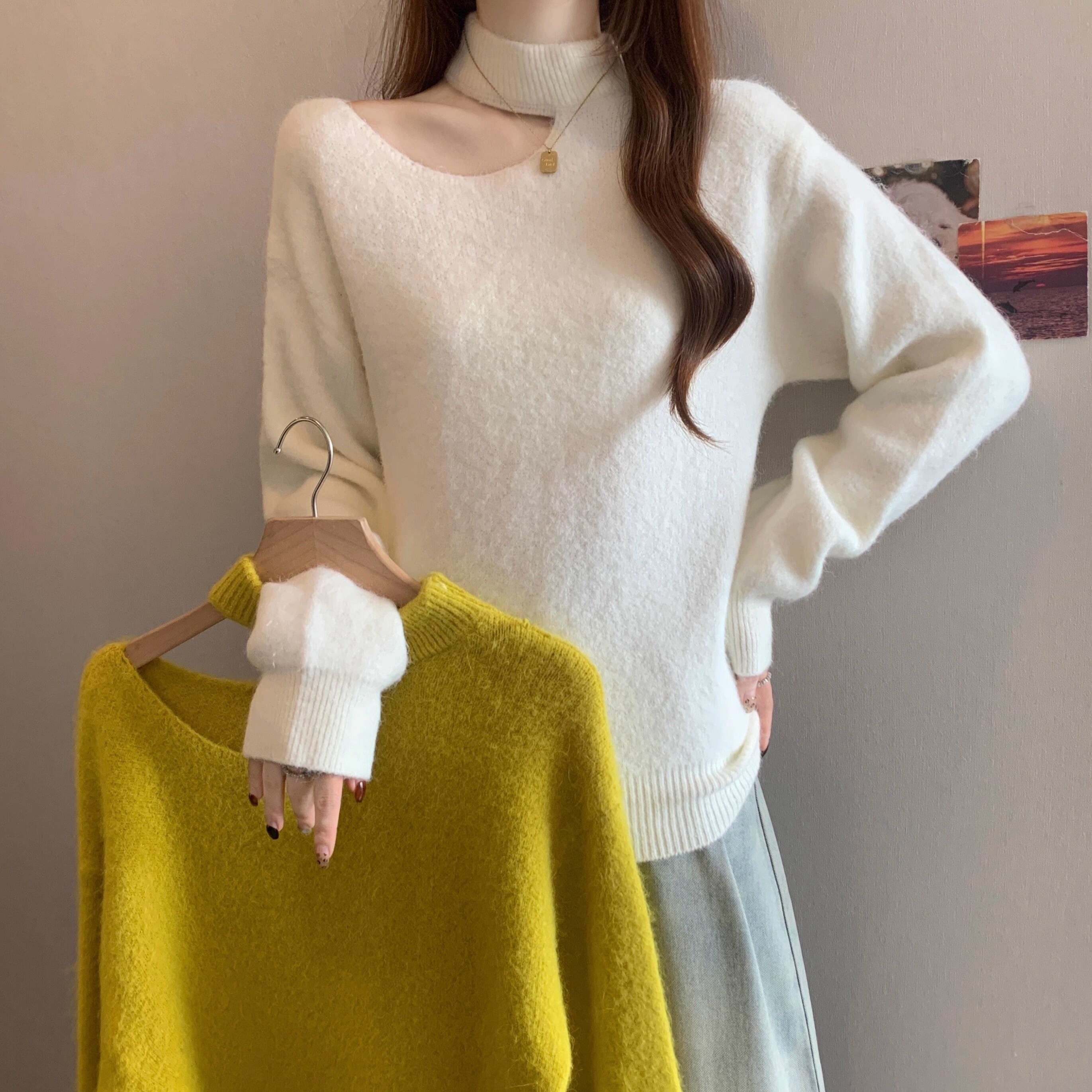 3色/スキッパーカラーケーブルニットトップス ・72990