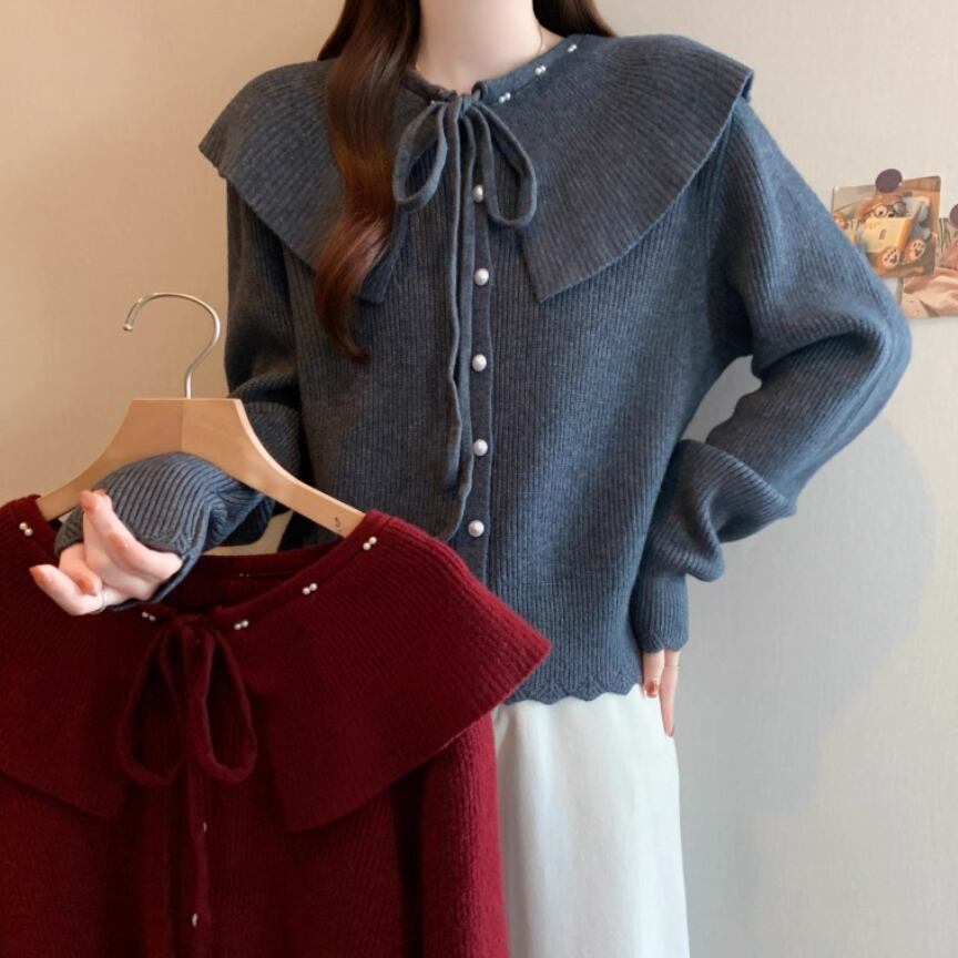 2色/ハートビーズVネックニットプルオーバー ・72985