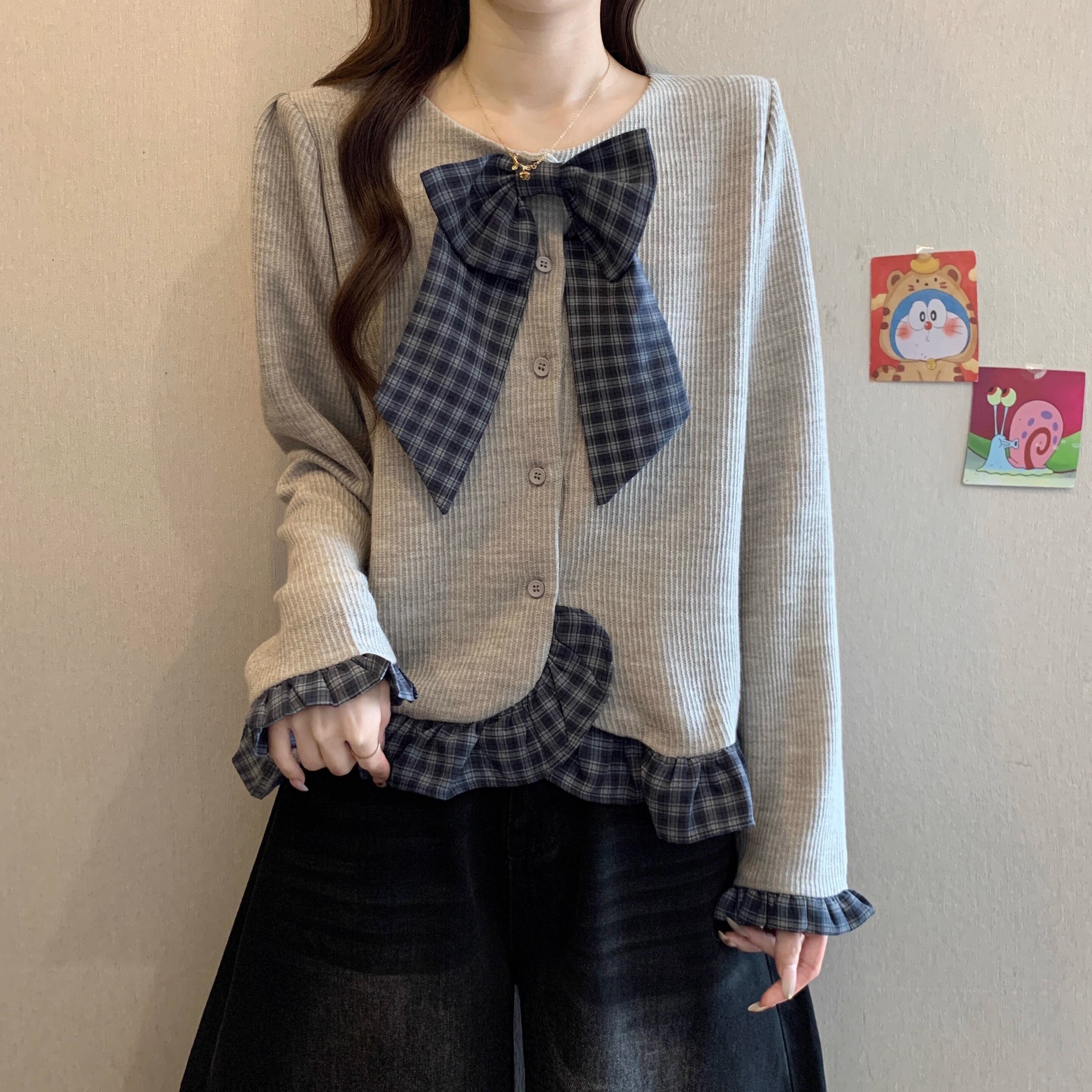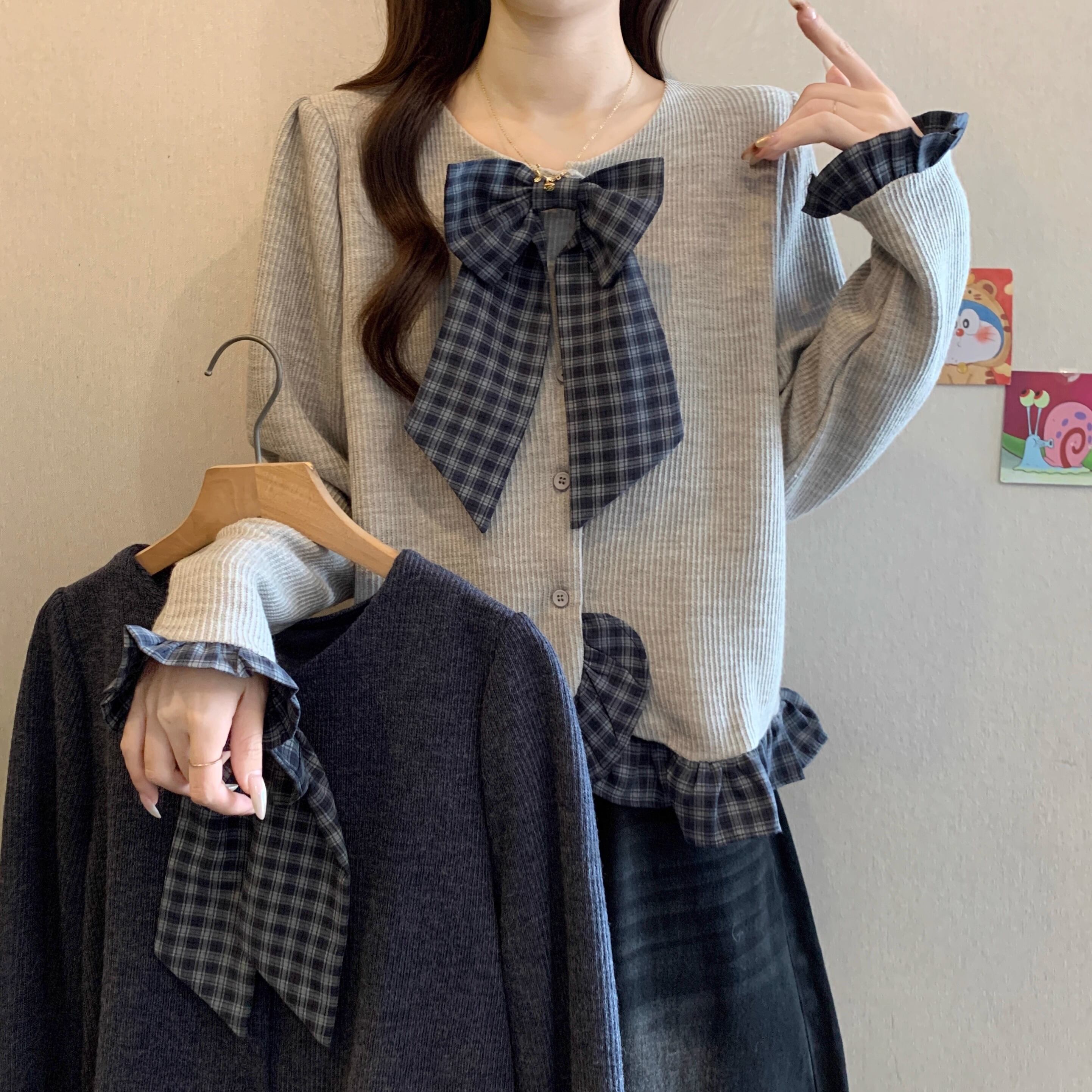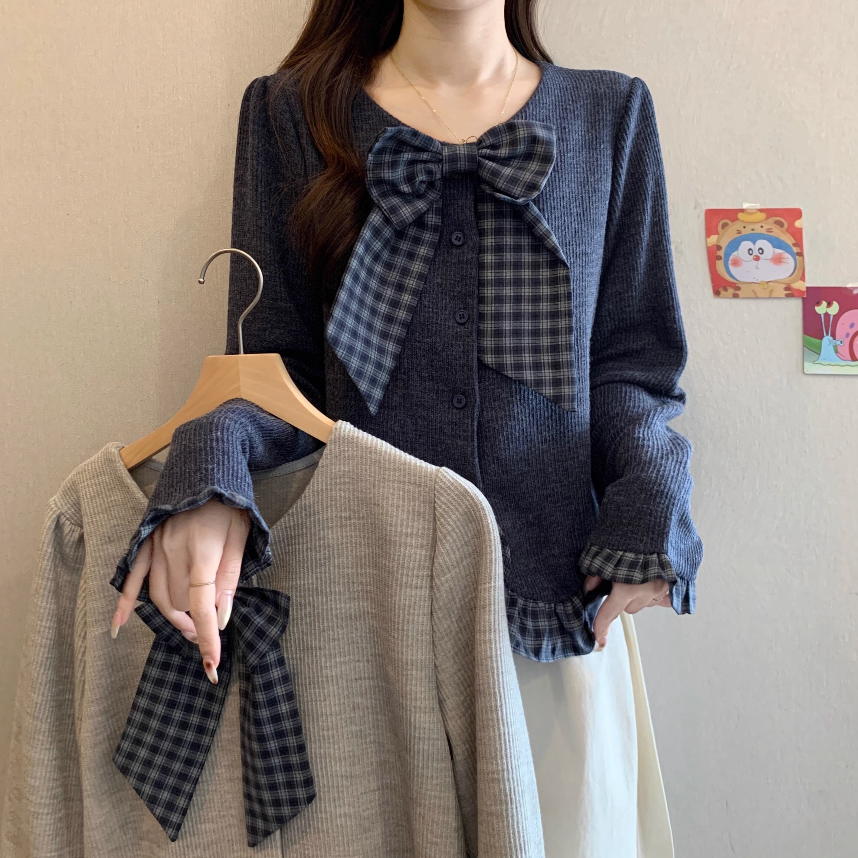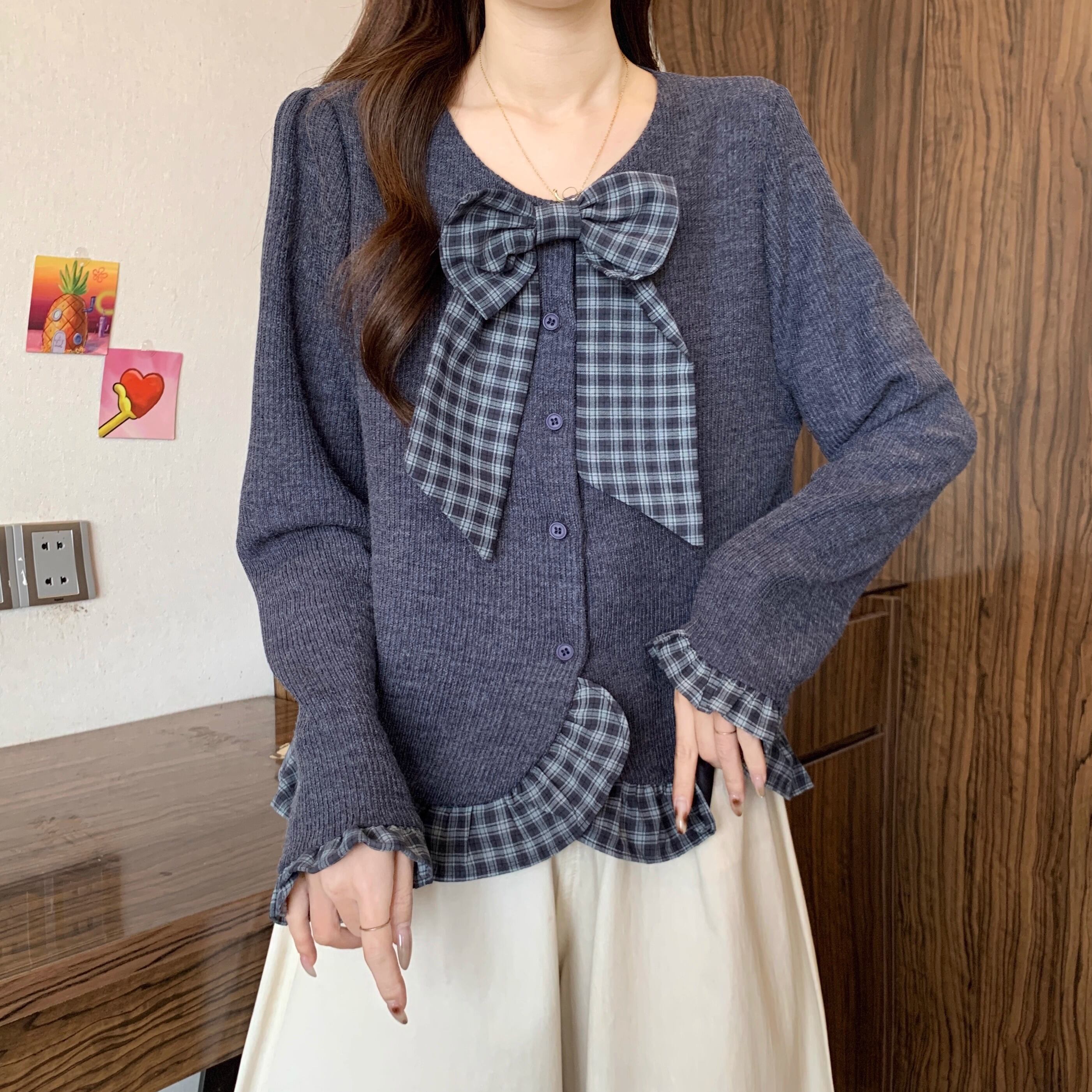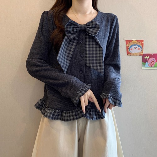 2色/マルチドットラウンドネックニットカーデ ・72979