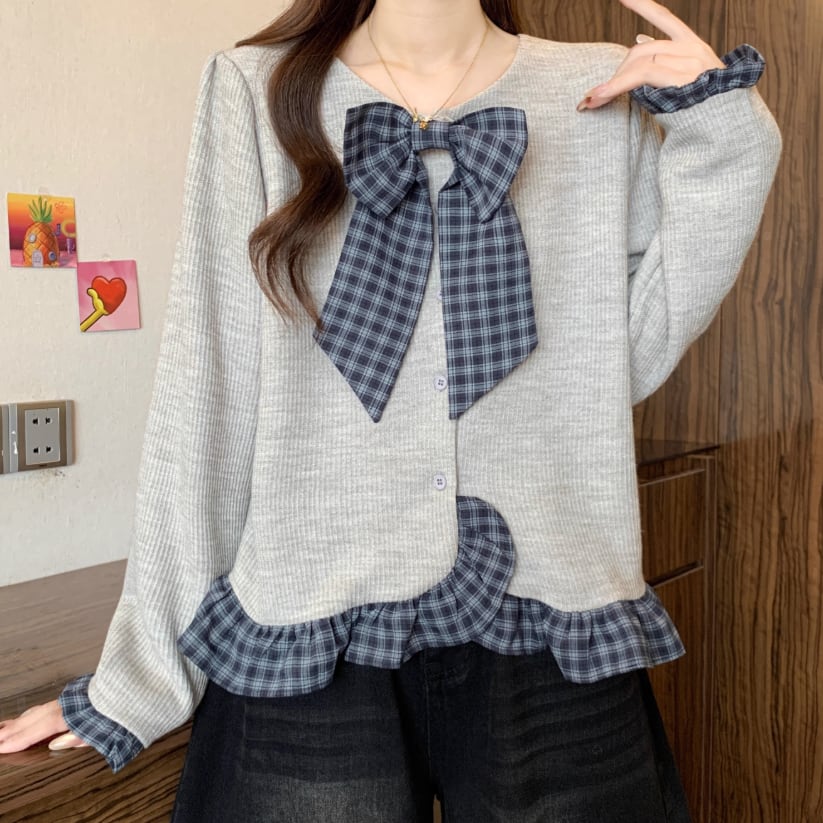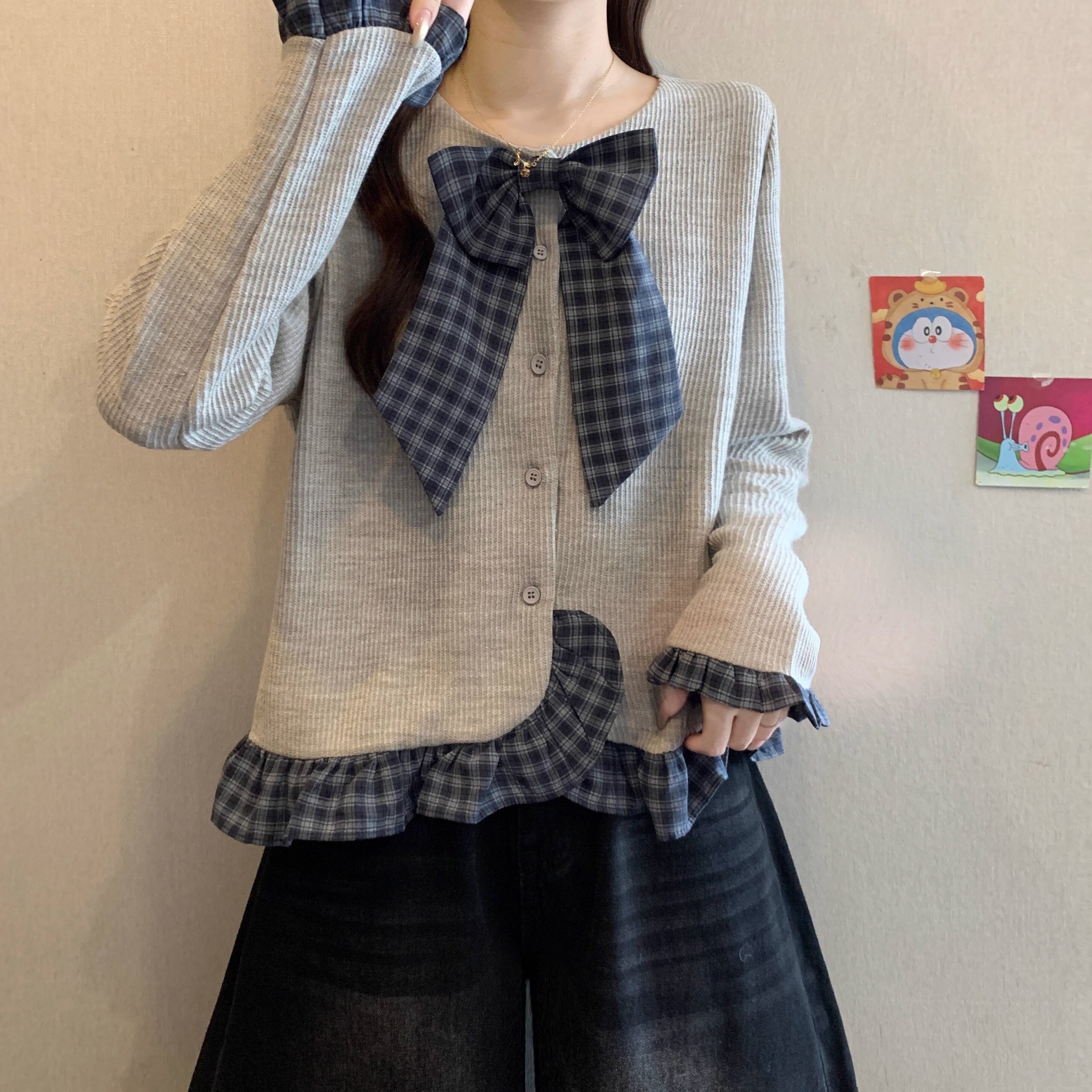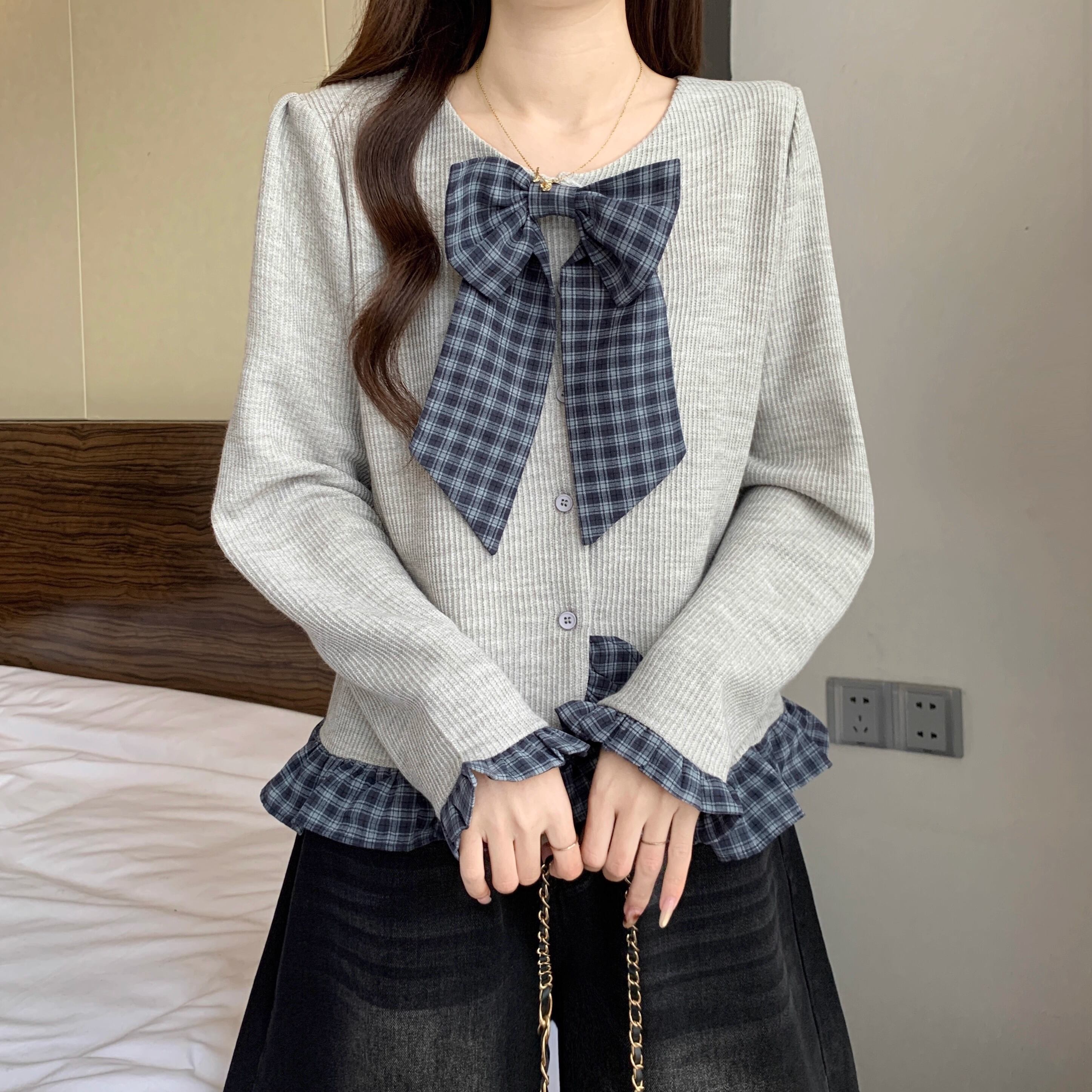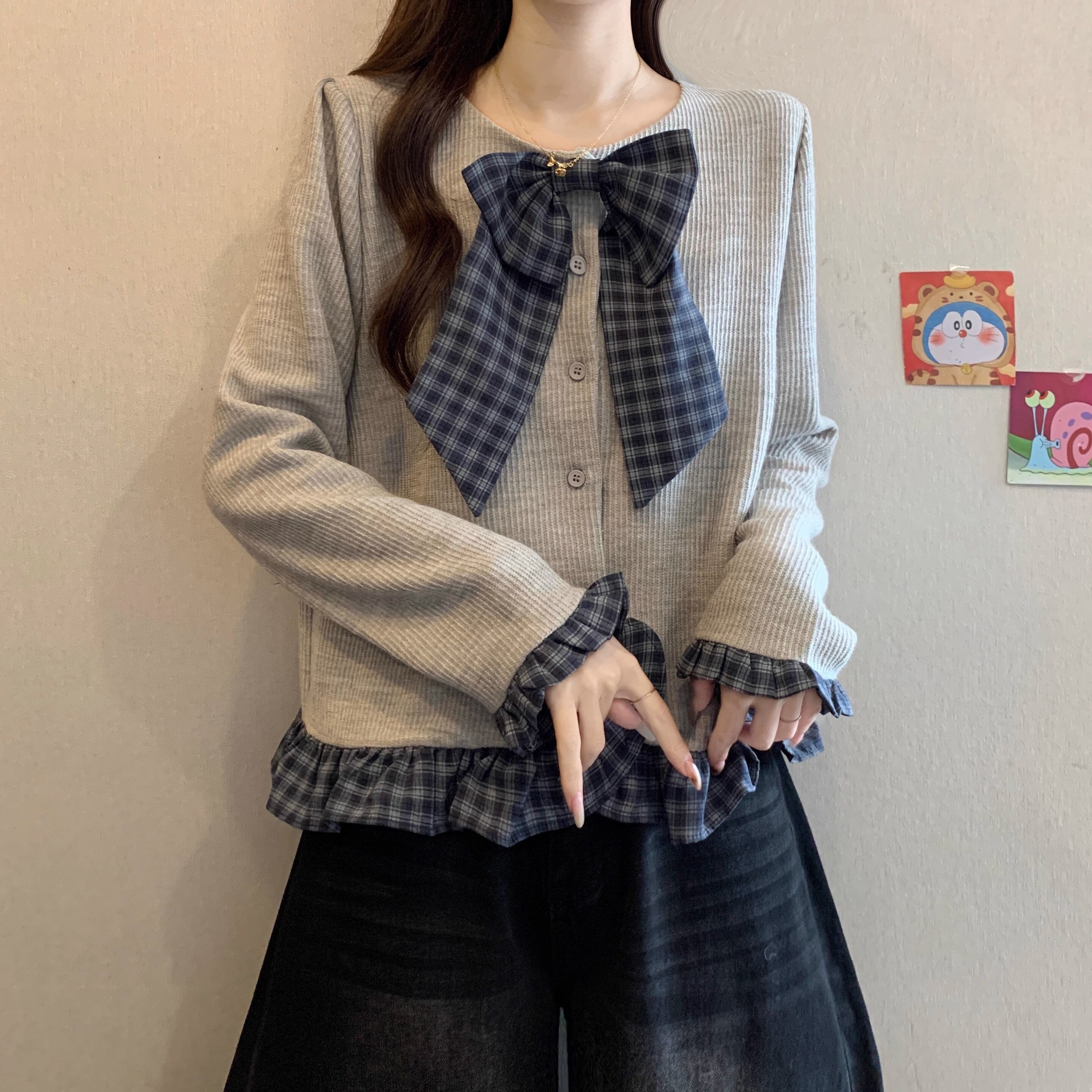 2色/マルチドットラウンドネックニットカーデ ・72979
