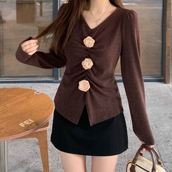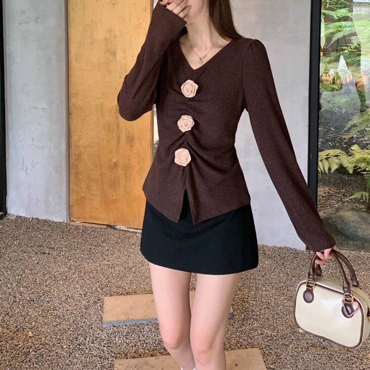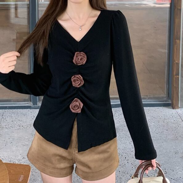 アニマルモチーフポロカラーニットトップス ・72947